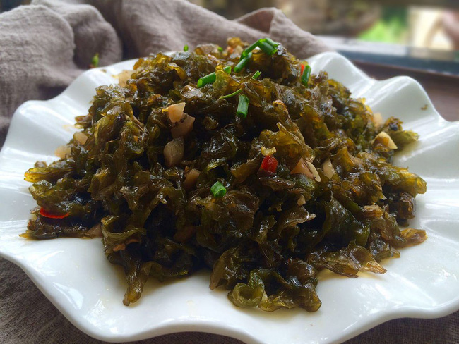Món ăn này nhìn chung không có gì gây khó khăn về thị giác như những món kể trên. Tảo địa bì thanh mát có thể chế biến thành nhiều món như nấu canh hay xào trứng.