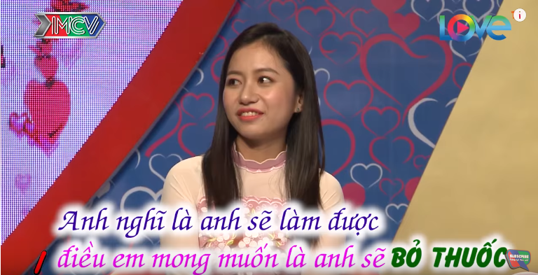 Qua chương trình, Nhung cũng mong muốn tìm được mẫu bạn trai biết chiều chuộng và tâm lý. Đặc biệt là không được hút thuốc lá, trong khi đó, Hồng Phóng lại là người có thói quen hút thuốc từ nhiều năm nay. Tuy nhiên, trước mặt 2 MC và toàn bộ khán giả trong trường quay, Phóng hứa sẽ bỏ thuốc và đang tìm cách “cai” dần không chỉ vì Nhung mà còn vì người cha của mình. Chia sẻ này được khán giả và Hồng Nhung “gật gù” ủng hộ tuyệt đối