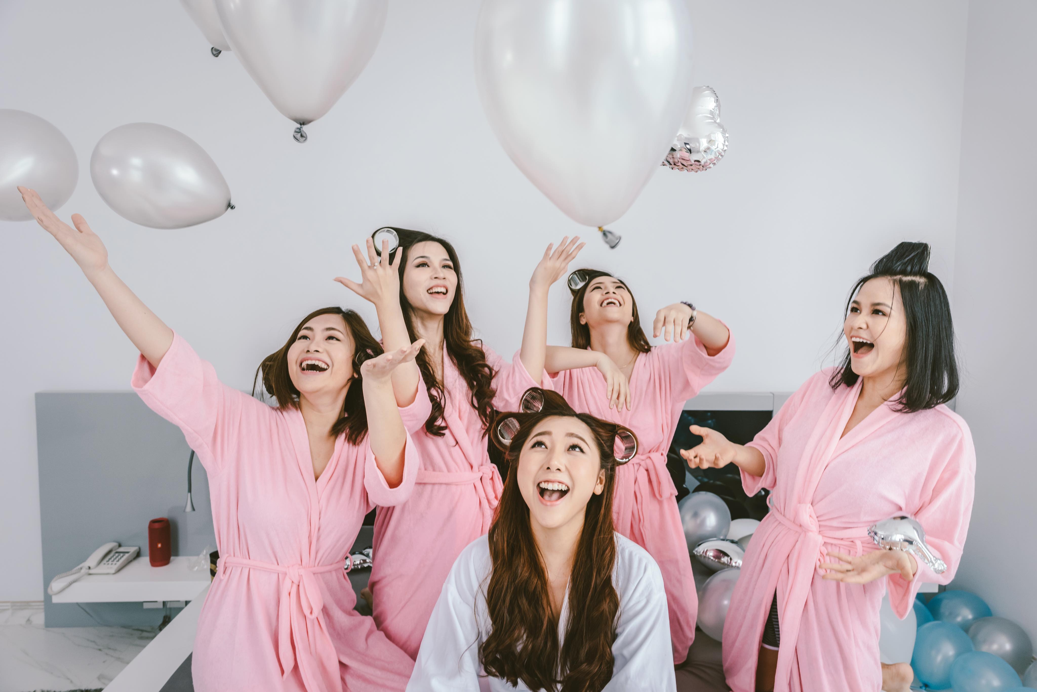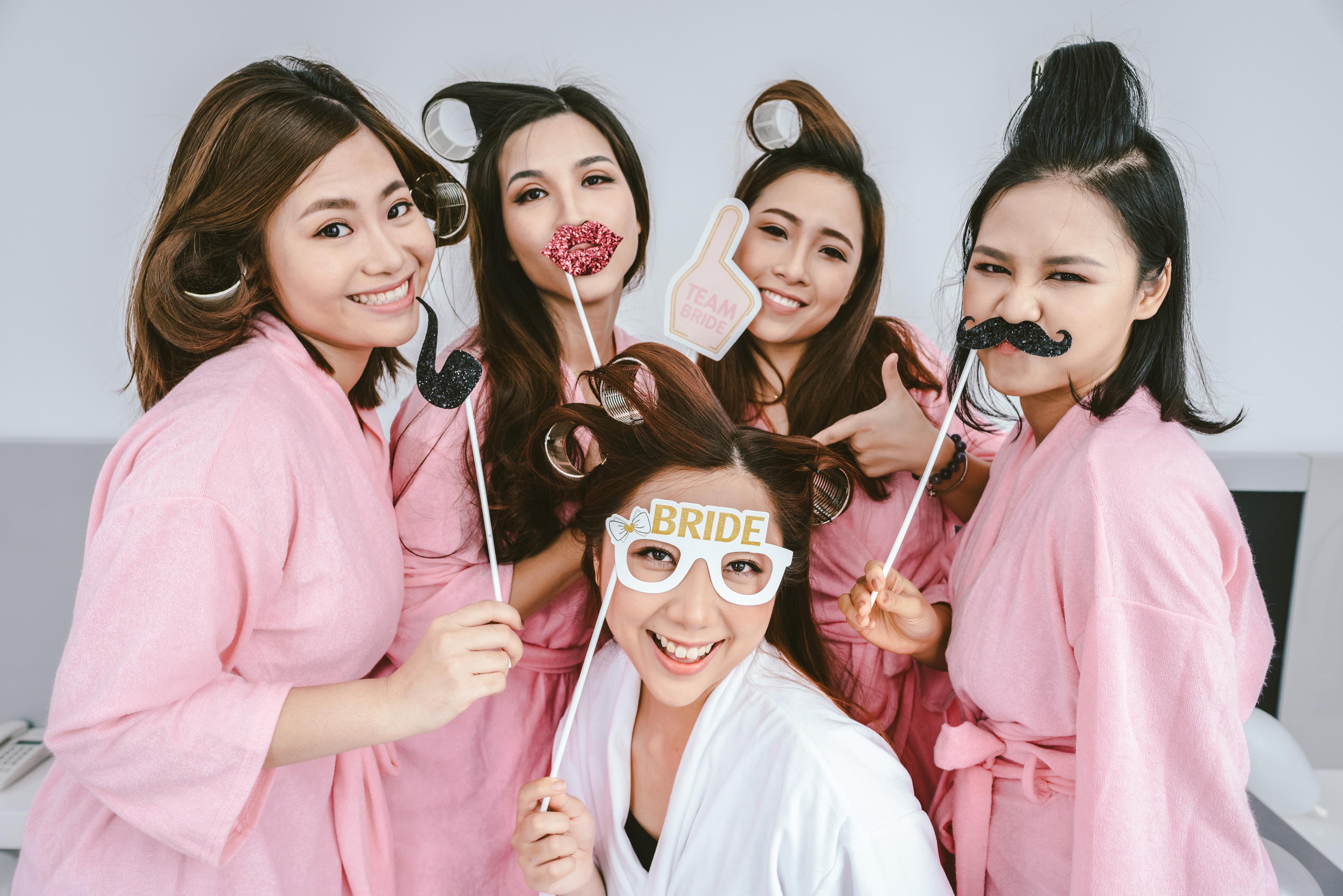 Huỳnh Mi quậy tưng bừng cùng hội bạn thân để giã từ đời độc thân trong bộ ảnh cưới.