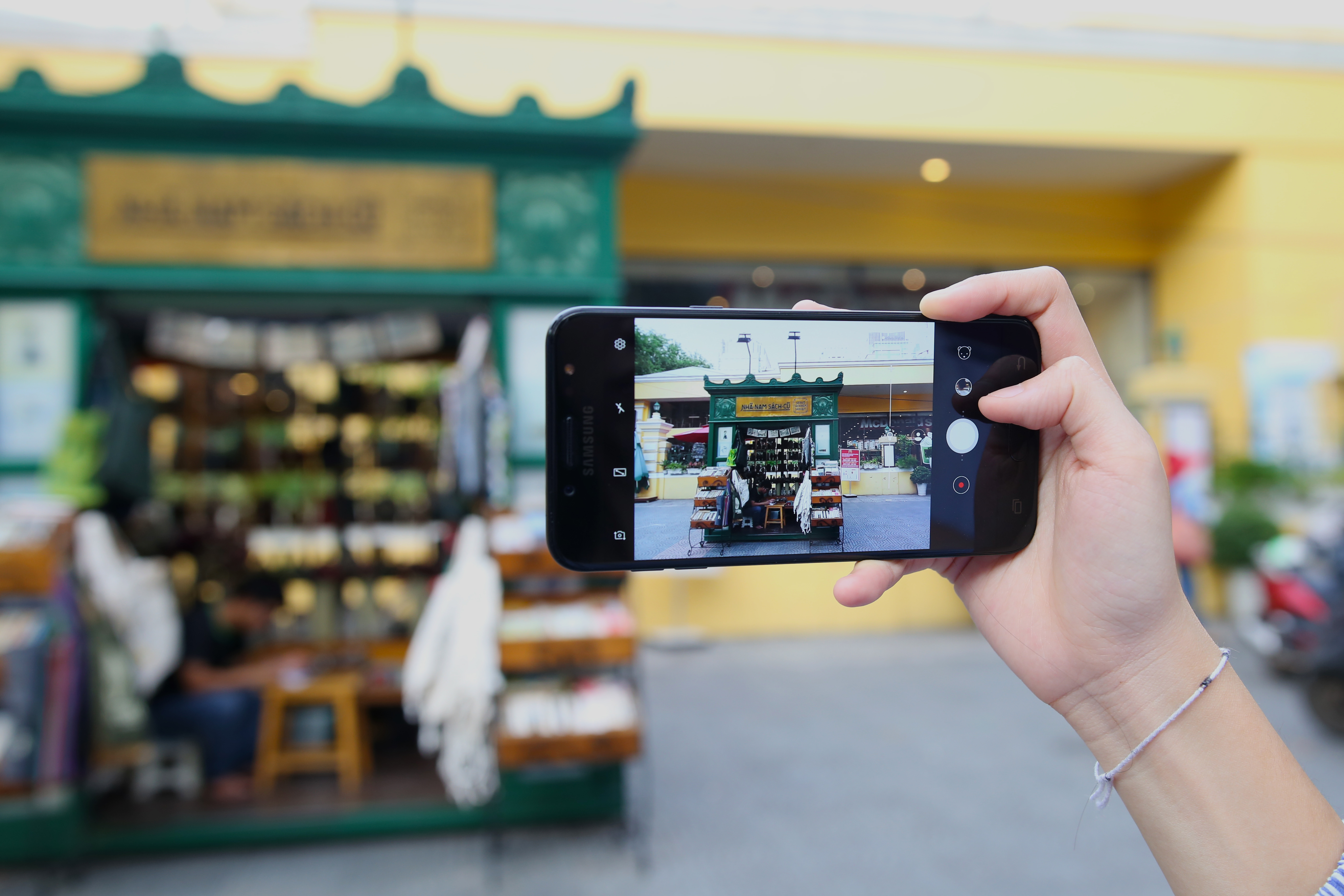 Tính năng chụp ảnh xóa phông chuyên nghiệp của Galaxy J7+ đã làm họ ấn tượng và chụp không ngừng nghỉ từ chợ bưu điện thành phố, đường sách Nguyễn Văn Bình đến những ly cocktail, tách cà phê nóng hay bông hoa ven đường.