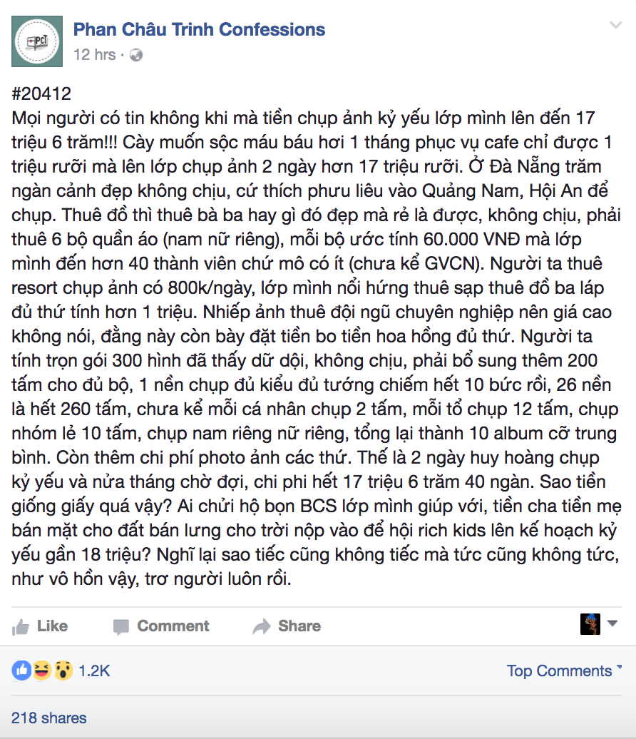 Những confession giấu tên xuất hiện trên MXH vào mùa kỷ yếu luôn là các câu chuyện như ”Bố mẹ không cho em tiền chụp kỷ yếu, em phải làm sao? Em sợ bị tẩy chay!”, hoặc ”Bỏ gần 20 triệu chụp kỷ yếu có đáng không? Cả lớp chỉ có mình em phản đối”… đã khiến người đọc phải tự hỏi: Chụp kỷ yếu là tự nguyện hay bắt buộc? Và học sinh thời nay thật sự giàu đến mức có thể bỏ ra gần 1 triệu 1 người để chụp kỷ yếu sao?