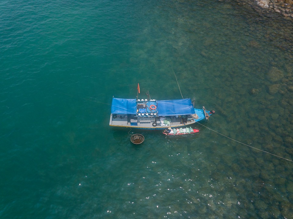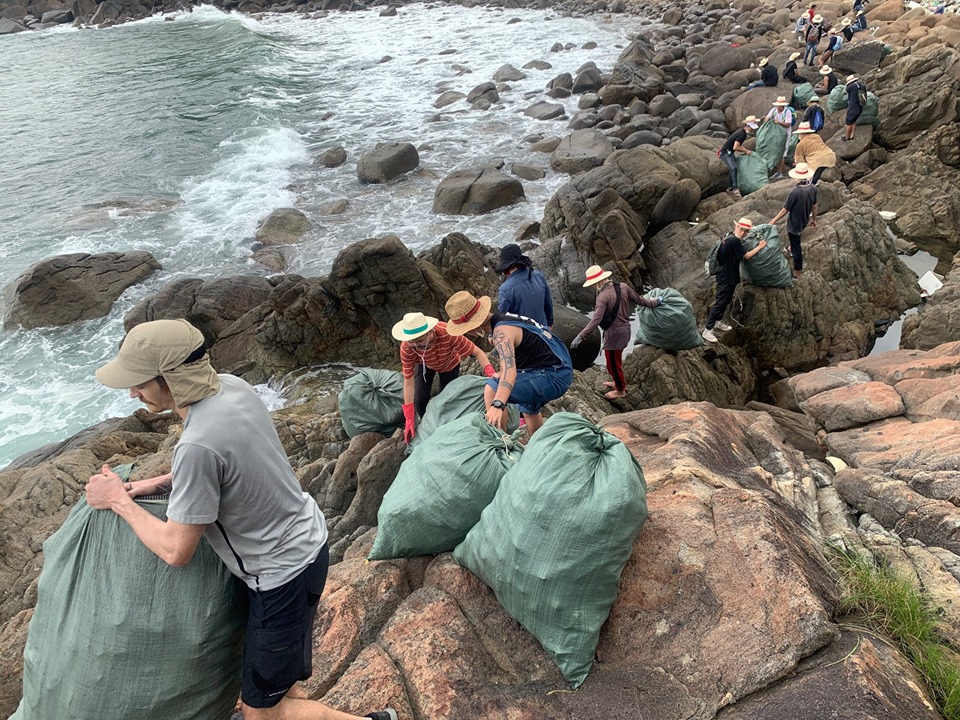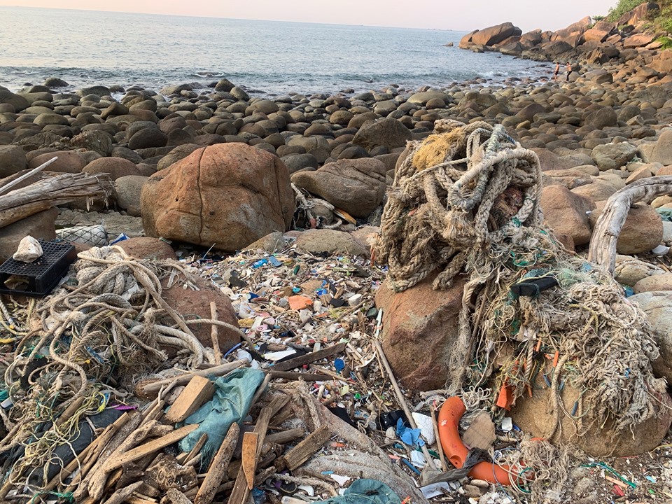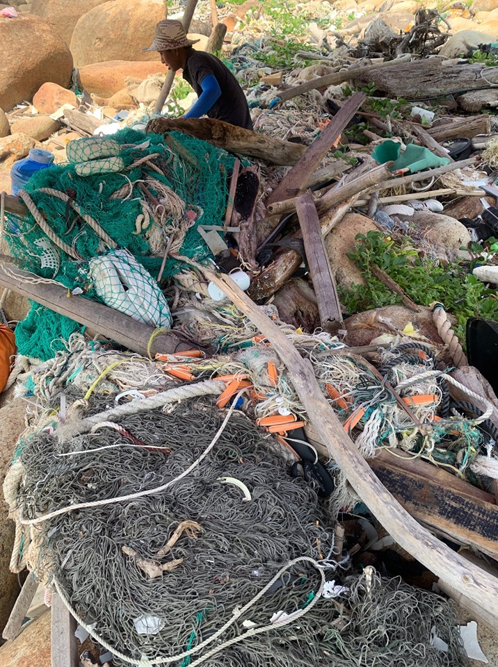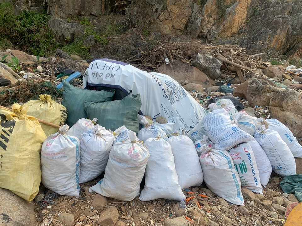 Bên cạnh đó, nhóm cũng gặp khá nhiều khó khăn khi dọn những loại rác ”cứng đầu” như lưới, dây thừng… Được biết, sau khi cho rác vào bao, cả nhóm sẽ chuyền rác dọc đường núi đá, rồi mỗi người dùng xe máy chở vài bao theo đường đèo núi Sơn Trà để xuống nơi tập kết rác, hay dùng ván chèo đứng chở dọc theo đường biển để đưa lên bờ, sau đó lại dùng xe máy chở tiếp xuống núi. Hoặc thuận tiện và an toàn nhất là thuê tàu cá để đưa rác về cảng.