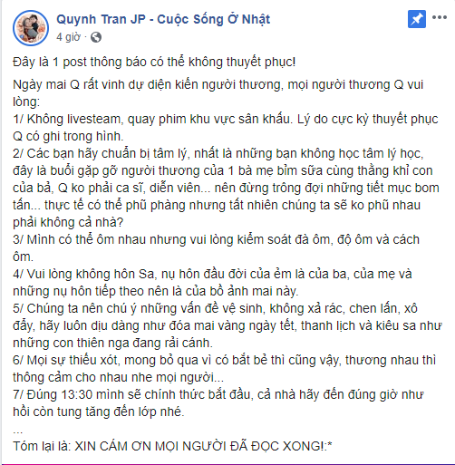 Nguyên văn những thông báo từ Quỳnh Trần JP