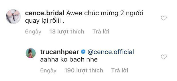 Trước nghi vấn cả hai “gương vỡ lại lành”, nhiều fan đã vào bình luận chúc mừng. Tuy nhiên, Trúc Anh lại có phản ứng khá bất ngờ và kiên quyết phủ nhận “không bao giờ”.