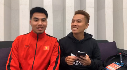 Trong phần trò chuyện, tiền vệ Đức Huy chia sẻ bản thân rất ít khi ghi bàn trong mỗi trận đấu vì vậy cú sút tung lưới quý giá vào đội tuyển Malaysia vừa qua khiến chân sút này vô cùng hạnh phúc.