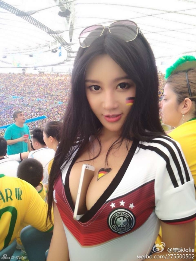 Tại World Cup 2014, có một mỹ nữ Trung Quốc tên Phàn Linh (nickname Jolie) đã trở nên nổi tiếng trên mạng xã hội nhờ chiêu trò ”kẹp điện thoại vào ngực” trên khán đài cổ vũ trong trận tứ kết ở sân Maracana (Brazil)