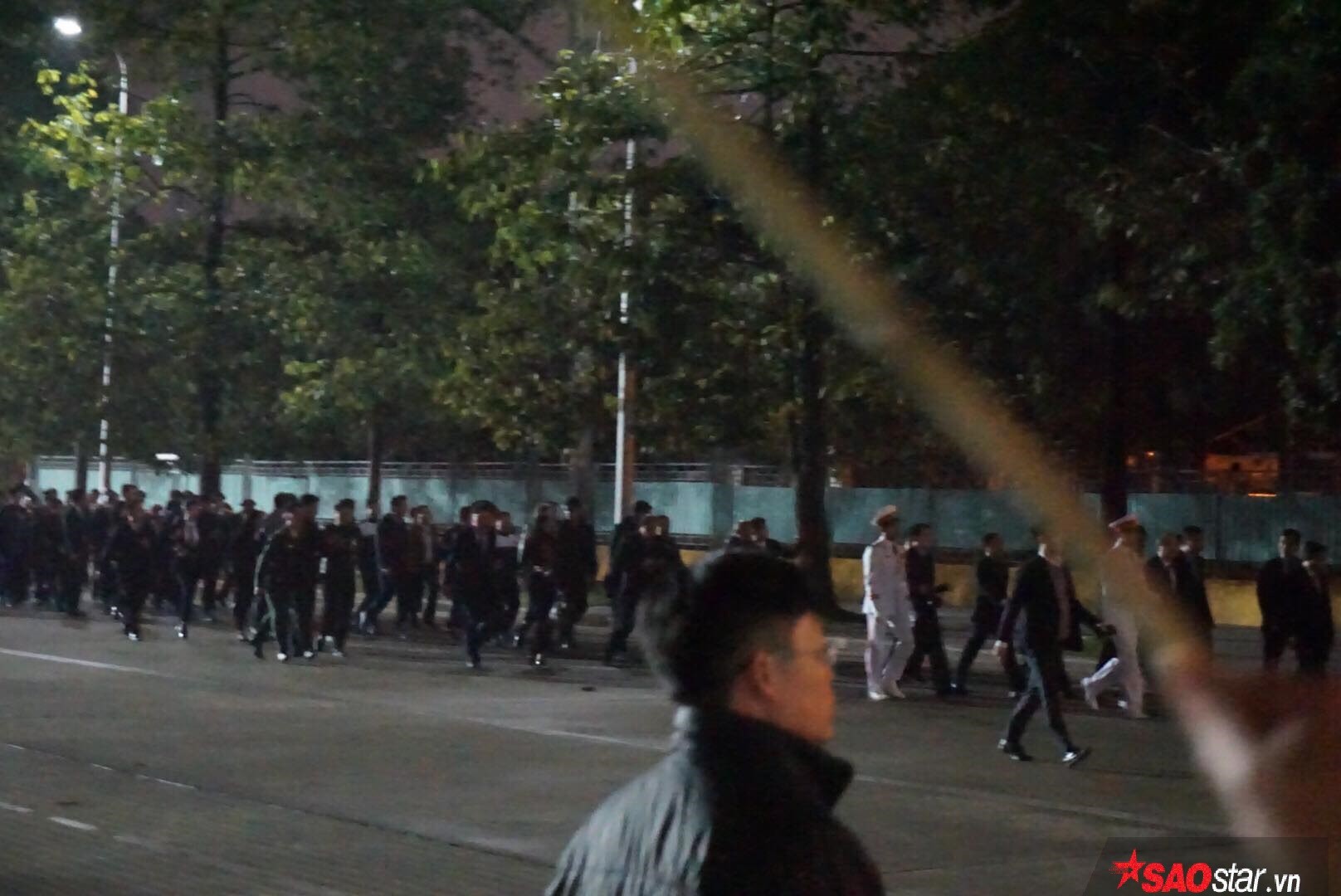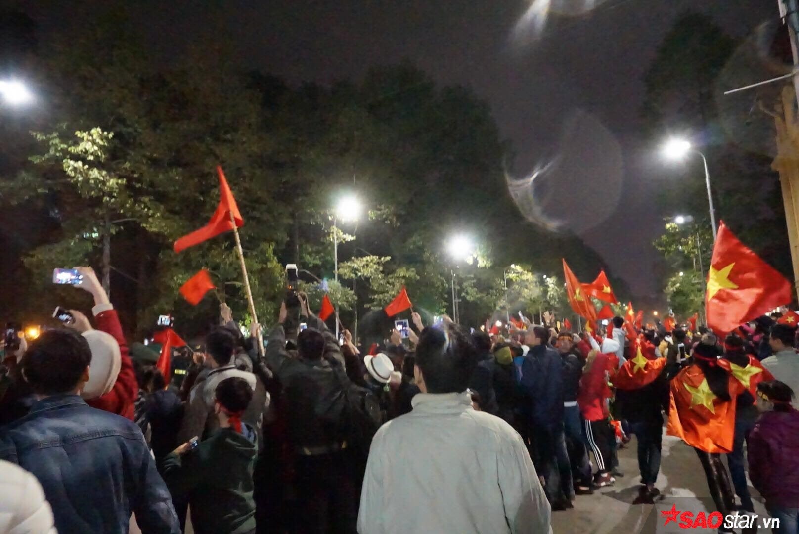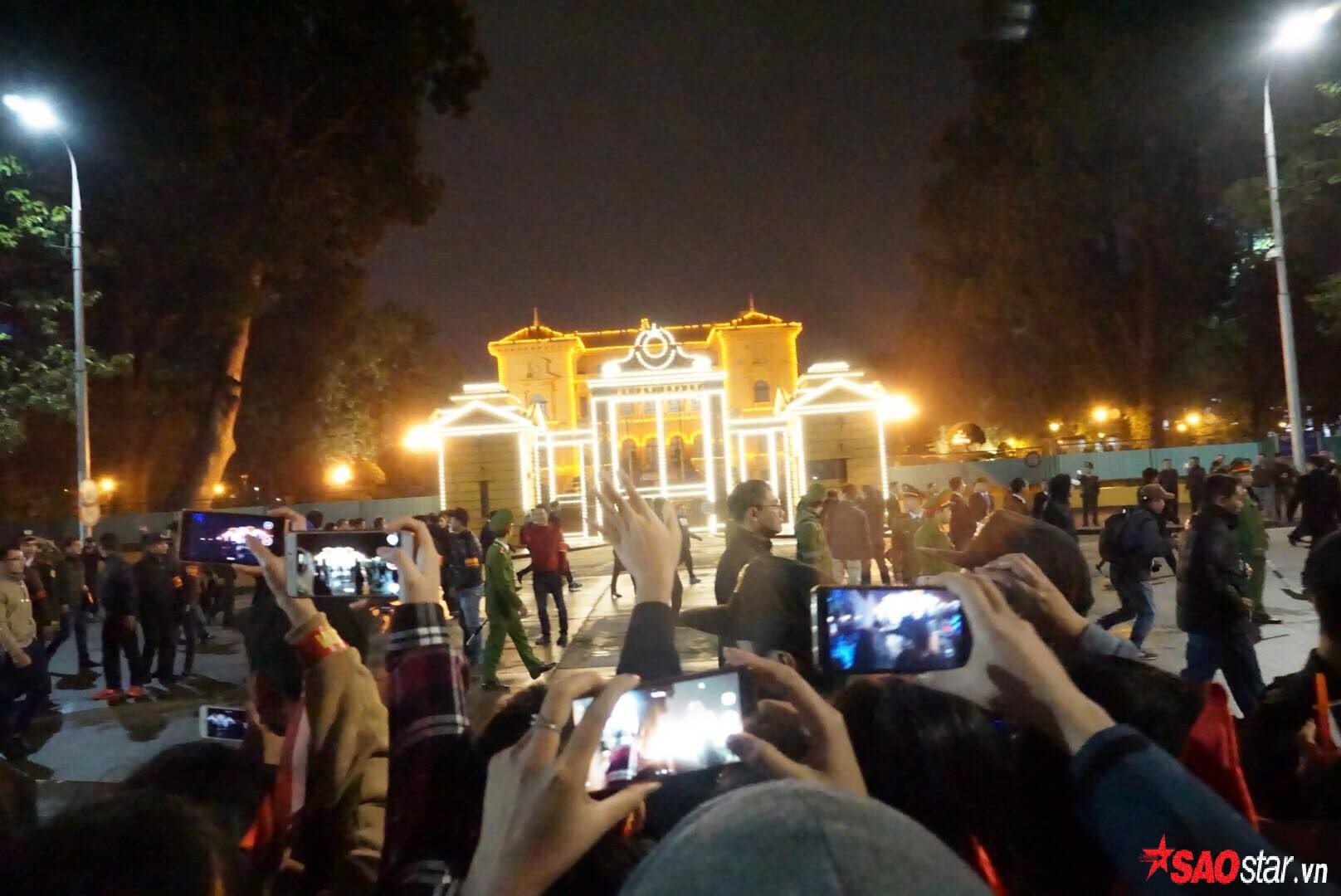 Tuy trời đã tối, nhiệt độ lúc này cũng đang xuống thấp nhưng vẫn rất đông người hâm mộ tập trung để tận mắt chứng kiến và gặp gỡ các người hùng.