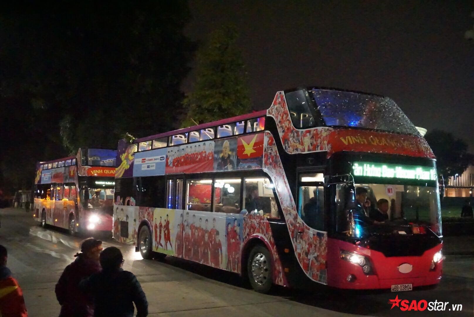 Những chiếc xe bus 2 tầng đã đưa các cầu thủ di chuyển đến trước khu vực Lăng Bác.