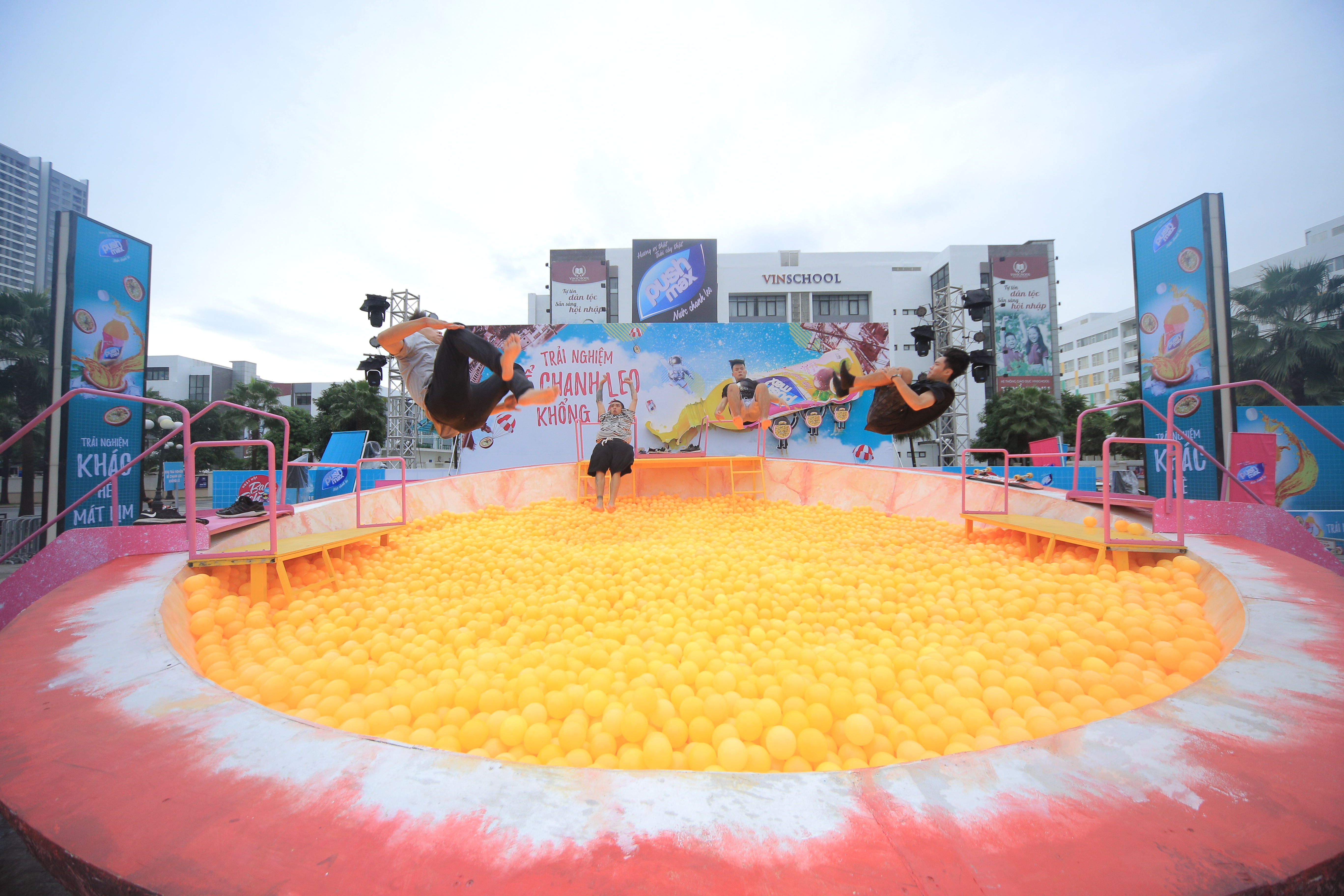 Đáp án chính là Bể chanh leo khổng lồ xuất hiện hôm nay tại Times City. Đón đầu cho đại nhạc hội Back to school hoành tráng vào tối 10/9 tại đây, các teen Hà Nội chắc chắn sẽ có những khoảnh khắc để đời với hoạt động siêu cool này. Điểm đặc biệt của trò “tự sướng” này chính là: bạn sẽ nhãy “tõm” vào bể chanh leo to đùng kia với độ cao khoảng 1m, sau đó nhanh chóng tạo dáng freestyle để đội ngũ của Pushmax Chanh leo có thể bắt lấy những khoảnh khắc thần thánh ấy.