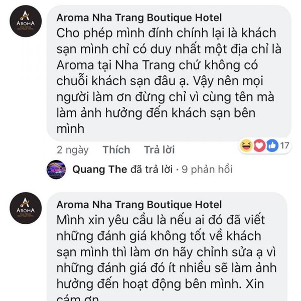 Các khách sạn, resort có tên gần giống với Aroma đều nhận đánh giá 1 sao vô cớ