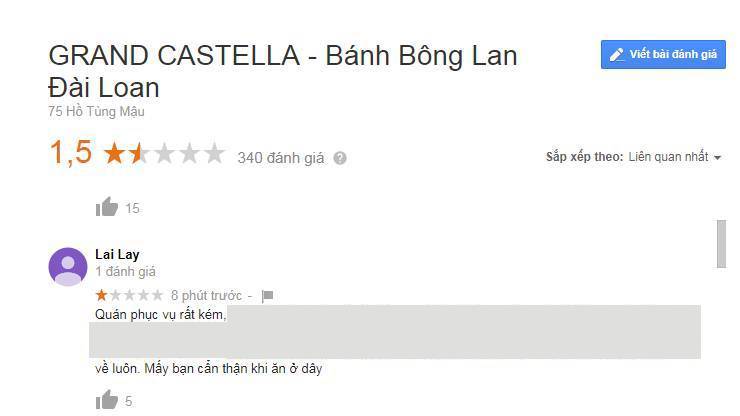 Cửa hàng bánh bông lan nhận đánh giá 1 sao.