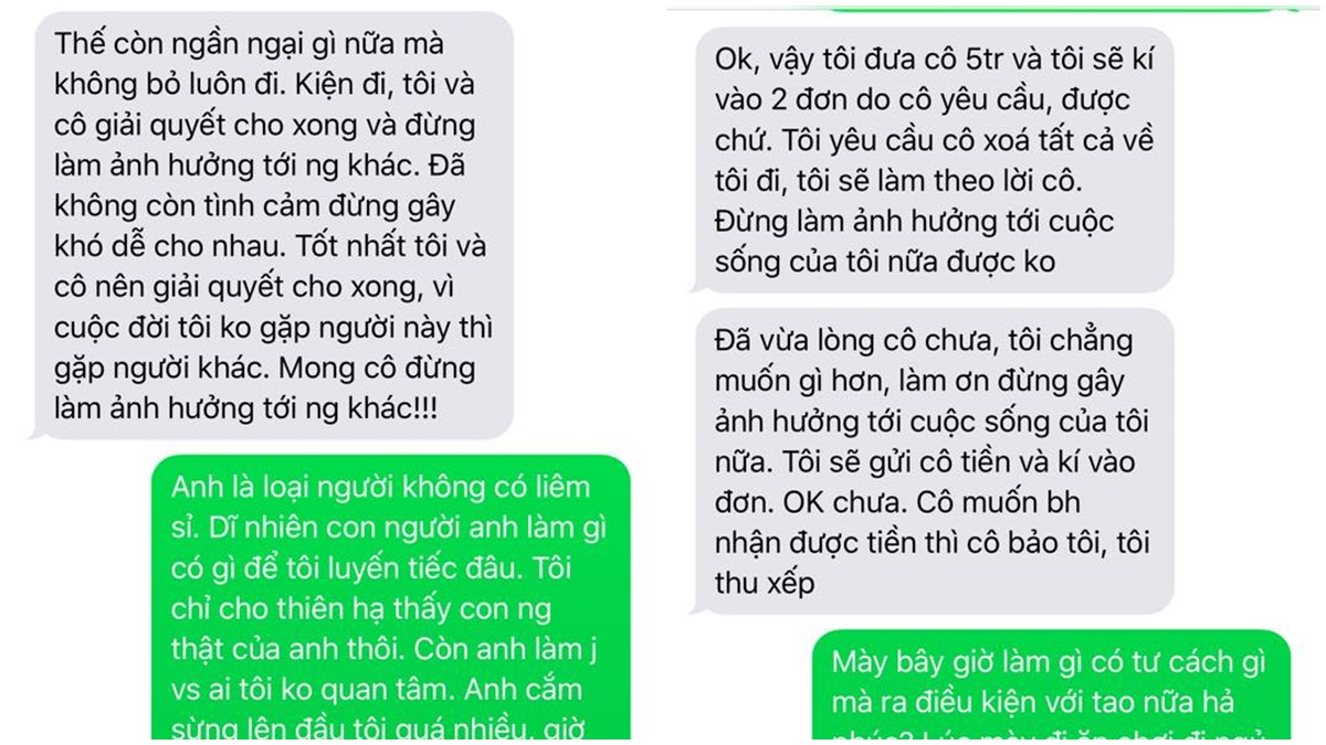 Em bắt được bằng chứng, up bài làm ầm trên facebook. Hai đứa dơ mặt quá hack cả Facebook của em. Chỉ vì muốn em xóa bài mà nó đồng ý kí cả vào giấy không nhận con rồi giấy đồng thuận đổi họ cho con. Đến quỳ, thằng này nó bị liệt não à mọi người ơi. Sợ bồ tổn thương nên sẵn sàng bỏ cả con ruột đây này.