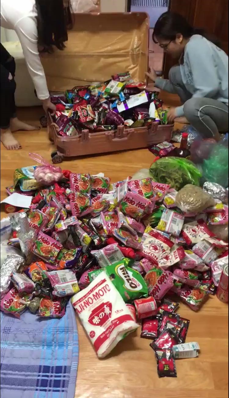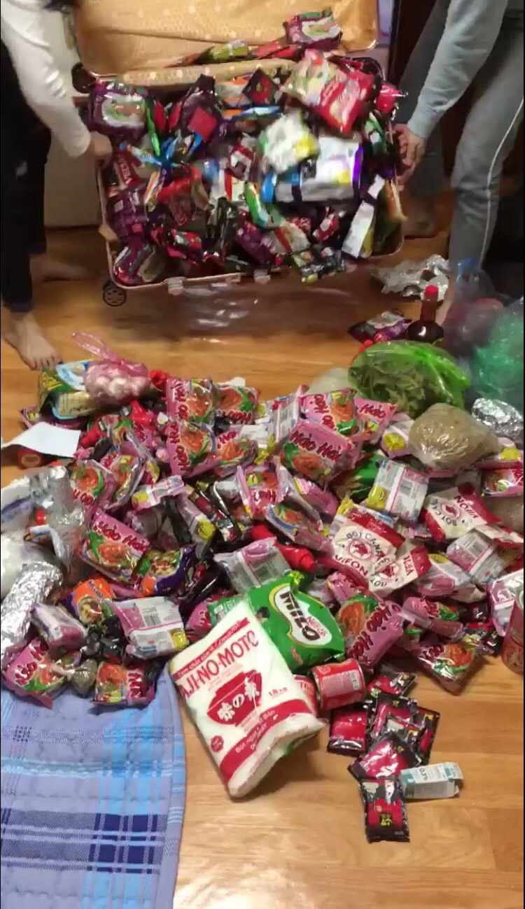 Vali đầy ắp mì tôm. Ảnh chụp màn hình