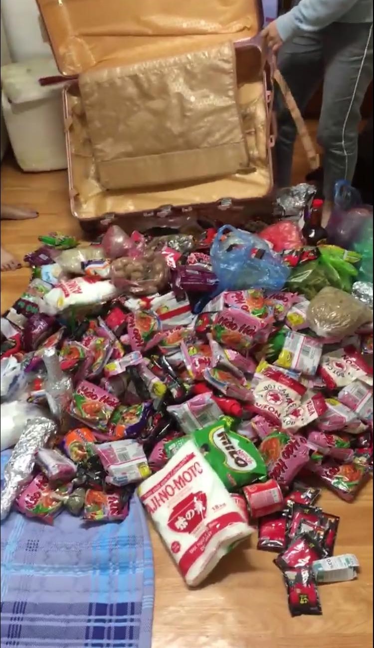 Cả vali đầy ắp đồ ăn. Ảnh chụp màn hình
