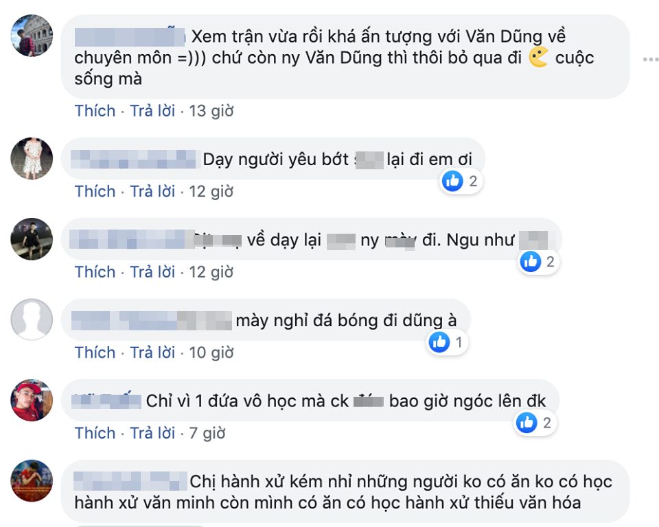 Rất đông người hâm mộ để lại bình luận chỉ trích trên facebook Nguyễn Văn Dũng.