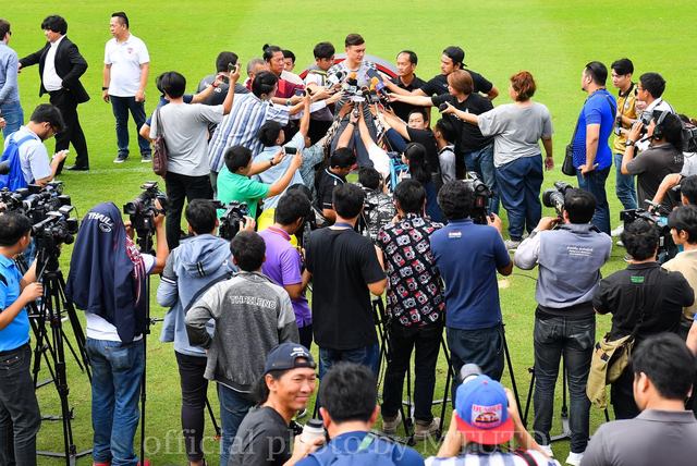 Với sức hút từ thủ môn số 1 của đội tuyển Việt Nam, không lạ gì khi truyền thông có mặt đông đảo tại buổi lễ ra mắt. Đặc biệt, trong lúc phát biểu, Văn Lâm đã bị bủa vây bởi cánh phóng viên báo chí của Thái Lan.