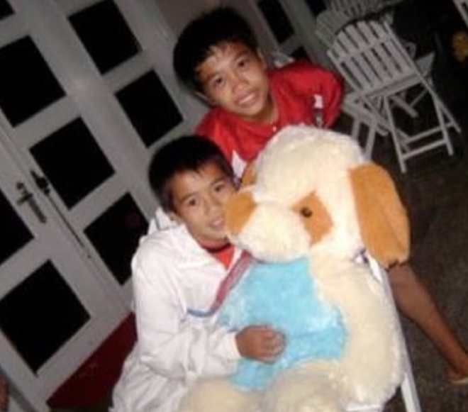 Văn Toàn chụp ảnh với các bạn khi còn nhỏ. Ảnh: Zing.vn.