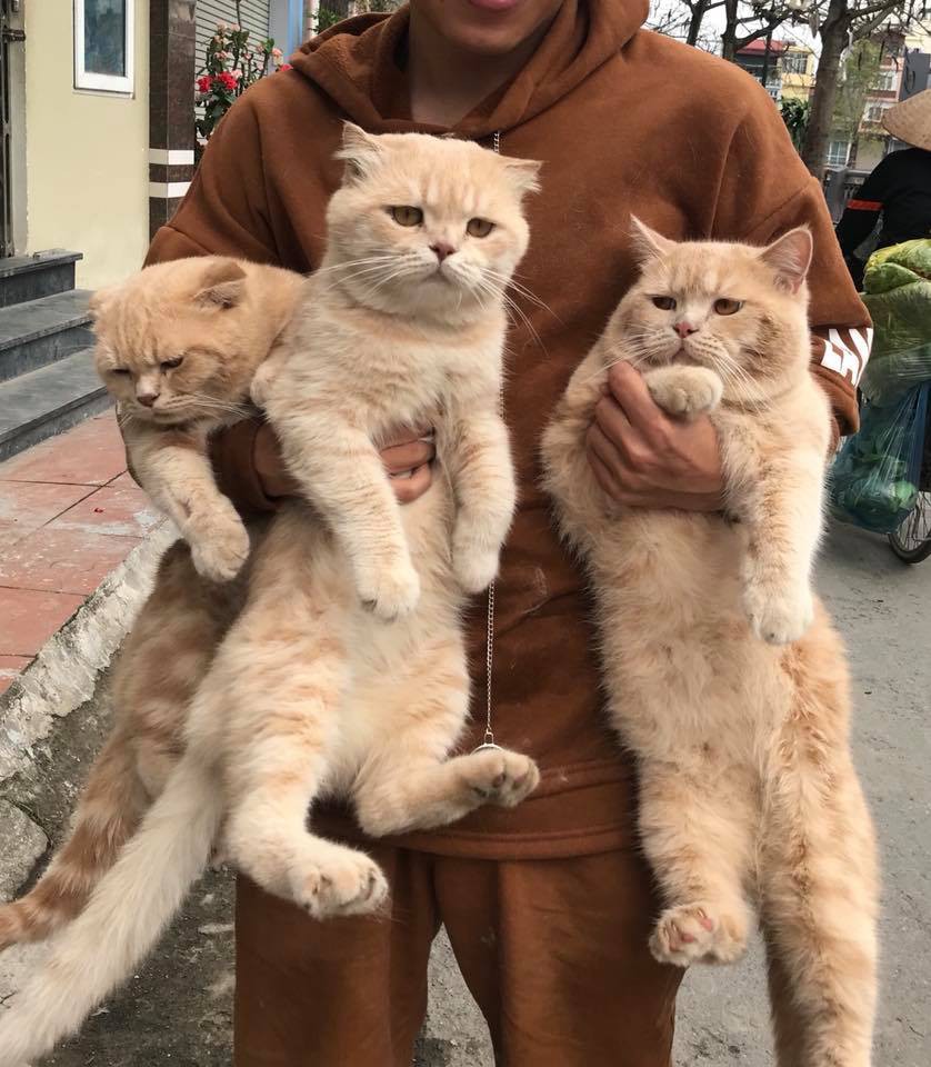 Bức ảnh tiết lộ “đời tư” của Chó được chủ nhân của cậu, bạn Lê Quốc Phong (sinh năm 1993, Hải Phòng) đăng tải. Bức ảnh chụp cảnh Quốc Phong đang ôm 3 chú mèo giống hệt nhau kèm caption: “Đố mọi người, đứa nào là bố, đứa nào là con?”. Ngay lập tức người xem bị hoa mắt vì đúng là con nào cũng giống nhau nhưng “hoàng thượng” (nickname của Chó) thì chỉ có một. Chẳng lẽ, Chó đã nổi tiếng đến mức đã có “bản sao”?