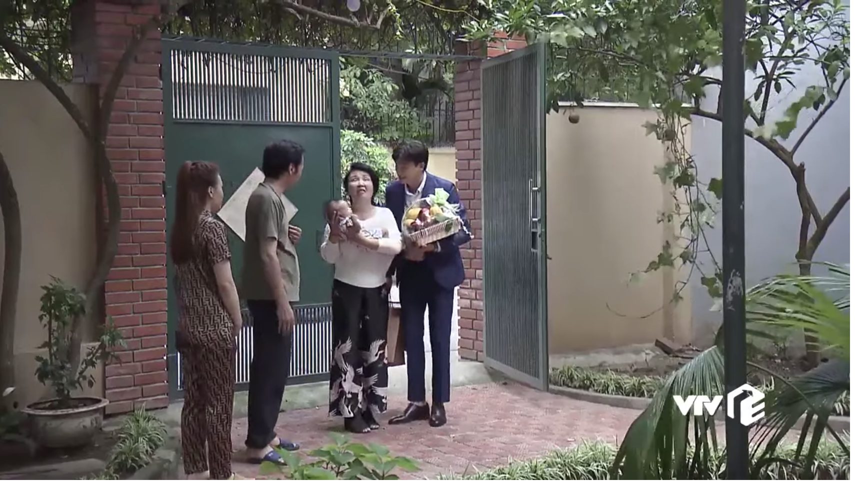 Cụ thể, sau nhiều ngày không gặp cháu, bà Giang và Vũ đã cùng sang nhà ông thông gia thăm cháu. Lẽo đẽo theo mẹ, Vũ khệ nệ bưng một giỏ hoa quả rất bắt mắt. Và lúc này, khán giả ồ lên: ”Ủa, chẳng phải kia là… hoa quả giả sao?”