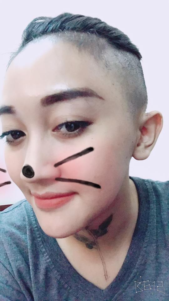 Có thể thấy, trước khi cạo đầu, cô nàng cũng đã có một mái tóc ngắn khá chất. Nhưng ”Việt Nam” nói là làm - thắng rồi, phải cạo đầu thôi!