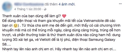 Dạo một vòng quanh Facebook mới thấy giới trẻ hào hứng với chương trình khuyến mãi có một không hai này của Vietnamobile như thế nào. Trên một diễn đàn của trường ĐH Kinh tế Quốc dân, bài chia sẻ về khuyến mãi của Vietnamobile nhận được rất nhiều hưởng ứng của các bạn sinh viên: “Từ thủa cha sinh mẹ đẻ đến giờ, mới thấy có cái chương trình khuyến mãi mà có thể trúng mỗi ngày, càng dùng càng trúng, trúng dễ hơn trượt, và phần thưởng toàn là thứ thanh xuân đứa nào cũng ham hố”. Bài post về chương trình tại Địa điểm ăn uống cũng nhận được rất nhiều bình luận và yêu thích từ cư dân mạng.