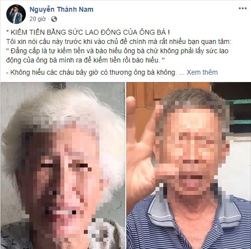 Riêng tôi dù cho nhà tôi có nghèo thì tôi không bao giờ để ông bà phải lao động vì tôi. OK. Ông bà già 70, 80 tuổi rồi còn bắt học thuộc từng chữ để làm video kiếm tiền cho các cháu. Khỏe không sao, đây ông bà già cả ốm yếu rồi còn bị hành tội. Tiền nhiều ông bà cũng đâu tiêu được. Cái chính là ông bà muốn được phụng dưỡng khi về già.