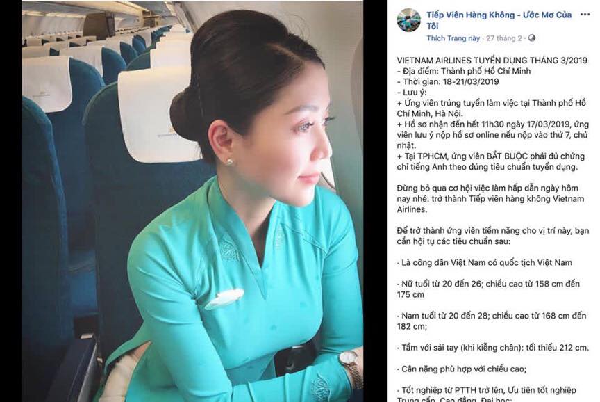 Bài đăng tuyển dụng của hãng hàng không Vietnam Airlines.