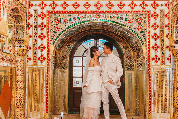 Cụ thể, trên trang cá nhân của mình, Mina Phạm đã khiến dân tình choáng ngợp với bộ ảnh lung linh không khác gì hình cưới được chụp tận Ấn Độ kèm caption đầy lãng mạn: “Life has taught us that love does not consist in gazing at each other but in looking outward together in the same direction”. (Tạm dịch: Cuộc đời dạy chúng ta rằng tình yêu không phải là nhìn lẫn nhau mà là nhìn về chung một hướng).