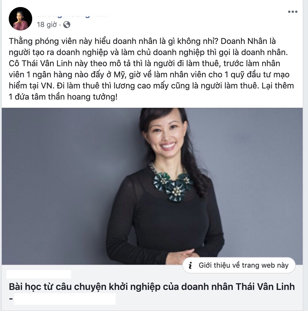 Chỉ cần vài động tác Google, chúng ta có thể thấy rõ Thái Vân Linh đang là CEO của Quỹ Đầu tư Việt Nam. Sau tám năm làm việc trong giới tài chính và khởi nghiệp ở Mỹ và trở về Việt Nam với tư cách là Giám đốc chiến lược và vận hành quỹ đầu tư DFJ VinaCapital, Thái Vân Linh cũng đã xây dựng cho riêng mình một thương hiệu thời trang mang tên là Rita Phil. Vì thế bà Linh hoàn toàn vẫn được gọi là doanh nhân. Tuy nhiên, trong bài báo mà Hoàng Anh chia sẻ lại không hề nhắc tới công việc kinh doanh riêng của Shark Linh cho nên mới nhất thời gây hiểu lầm.