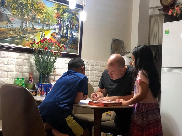 Anh thường xuyên giúp các bé học tập và có nhiều dịp đưa Thu Phượng và các con đi chơi.