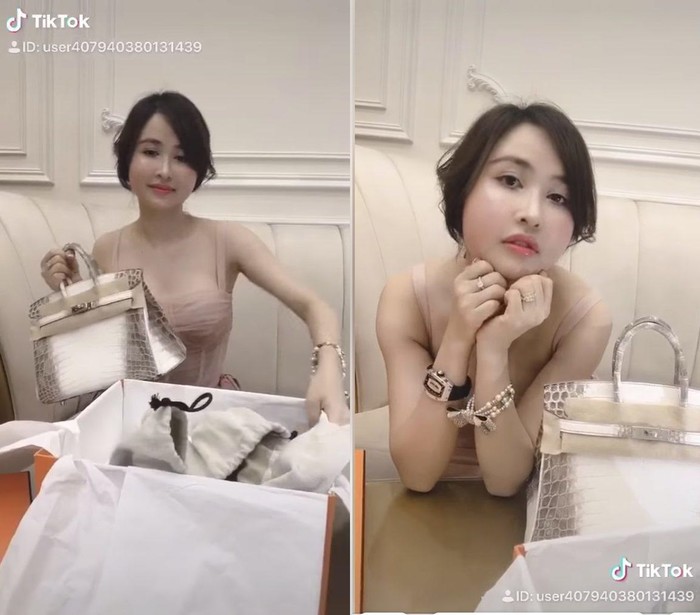 … thì Mina ở nhà đăng clip đập hộp túi hiệu…