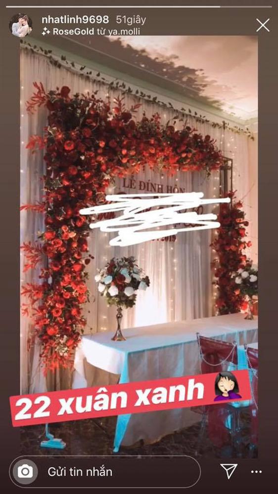 Mới đây, trên trang cá nhân, Nhật Linh đã hé lộ những bức ảnh đầu tiên về không gian tổ chức đám hỏi của mình. Từ bàn tiệc, lẵng hoa, sân khấu… tất cả đều đã được sắp đặt đâu vào đấy. Thế nhưng, cô dâu tương lai vẫn quyết định “giấu nhẹm” thời gian chính xác diễn ra buổi lễ.