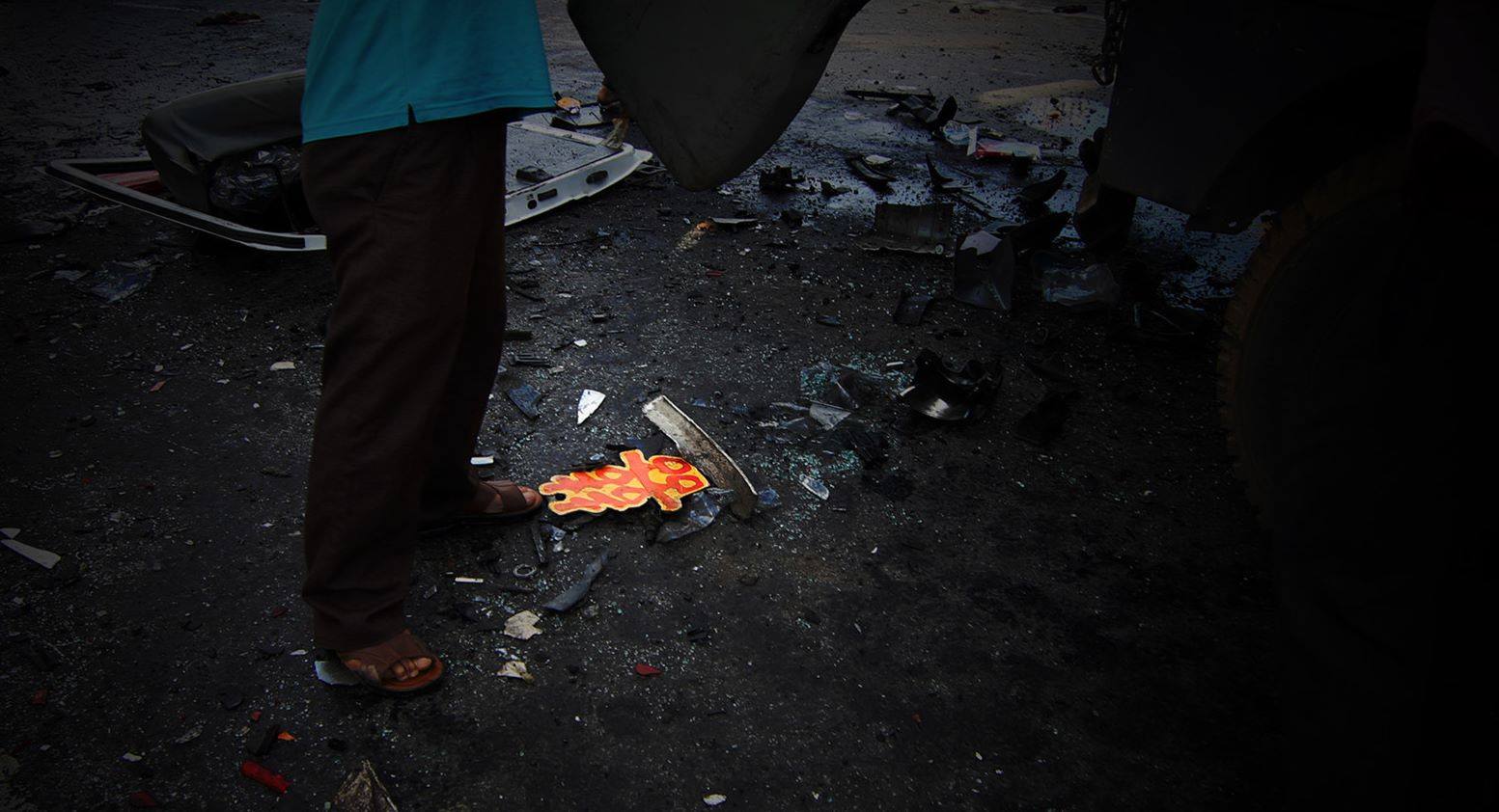 Mọi người nói với nhau, có lẽ đây chính là bức ảnh buồn nhất trong vụ tai nạn vừa qua. Đó là tấm hình chụp duy nhất một chữ hỷ đỏ thắm lạc trôi giữa ngổn ngang thân xe rước đau tan vỡ vì va chạm giao thông.
