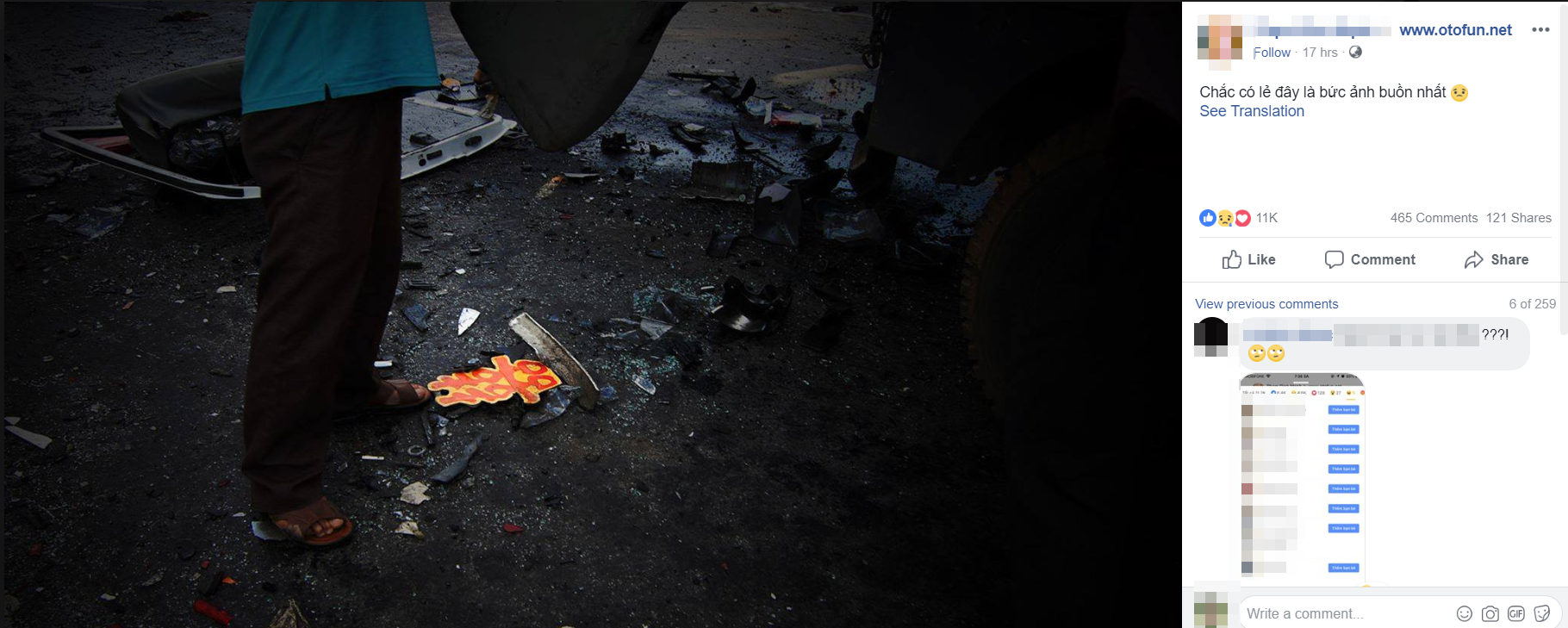 “Dòng chữ hỷ lạc trôi giữa đổ vỡ, chẳng còn ai quan tâm đến chữ hỷ đỏ. Thực sự là bức ảnh quá đau đớn, tang tóc“, một nickname khác lên tiếng.