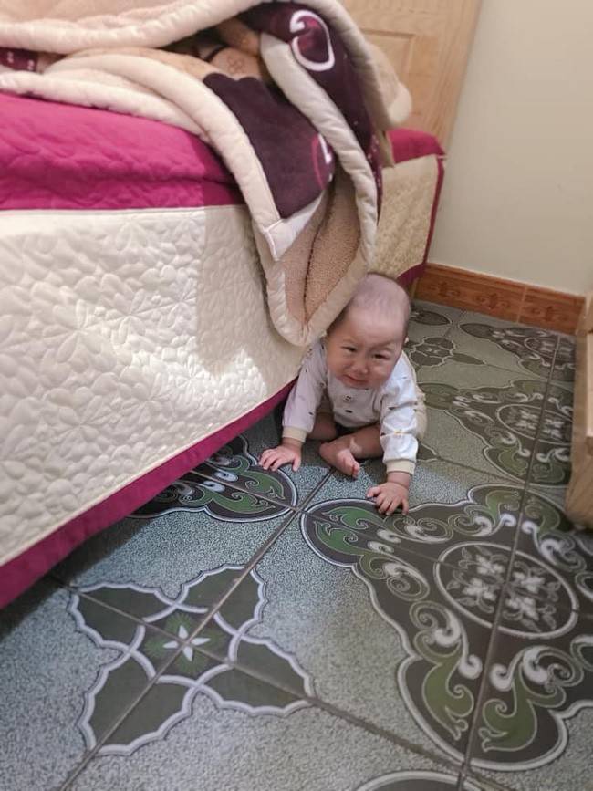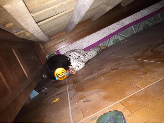 Thì ra, cô con gái của chị đã chui tọt xuống gầm giường chơi với gián từ bao giờ. Bức ảnh sau khi được chia sẻ lên MXH đã gây thích thú với dân mạng, nhất là team bỉm sữa.