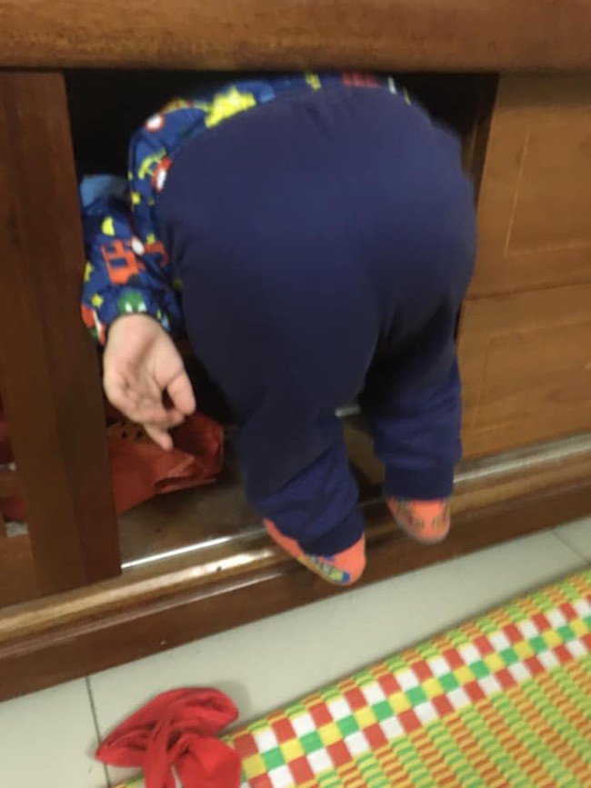 - ”Ôi y hệt nhà mình, cũng thích chơi trò ú tim với mẹ, lắm lúc tìm con thất thanh không thấy đâu hóa ra trốn vào cánh tủ”.