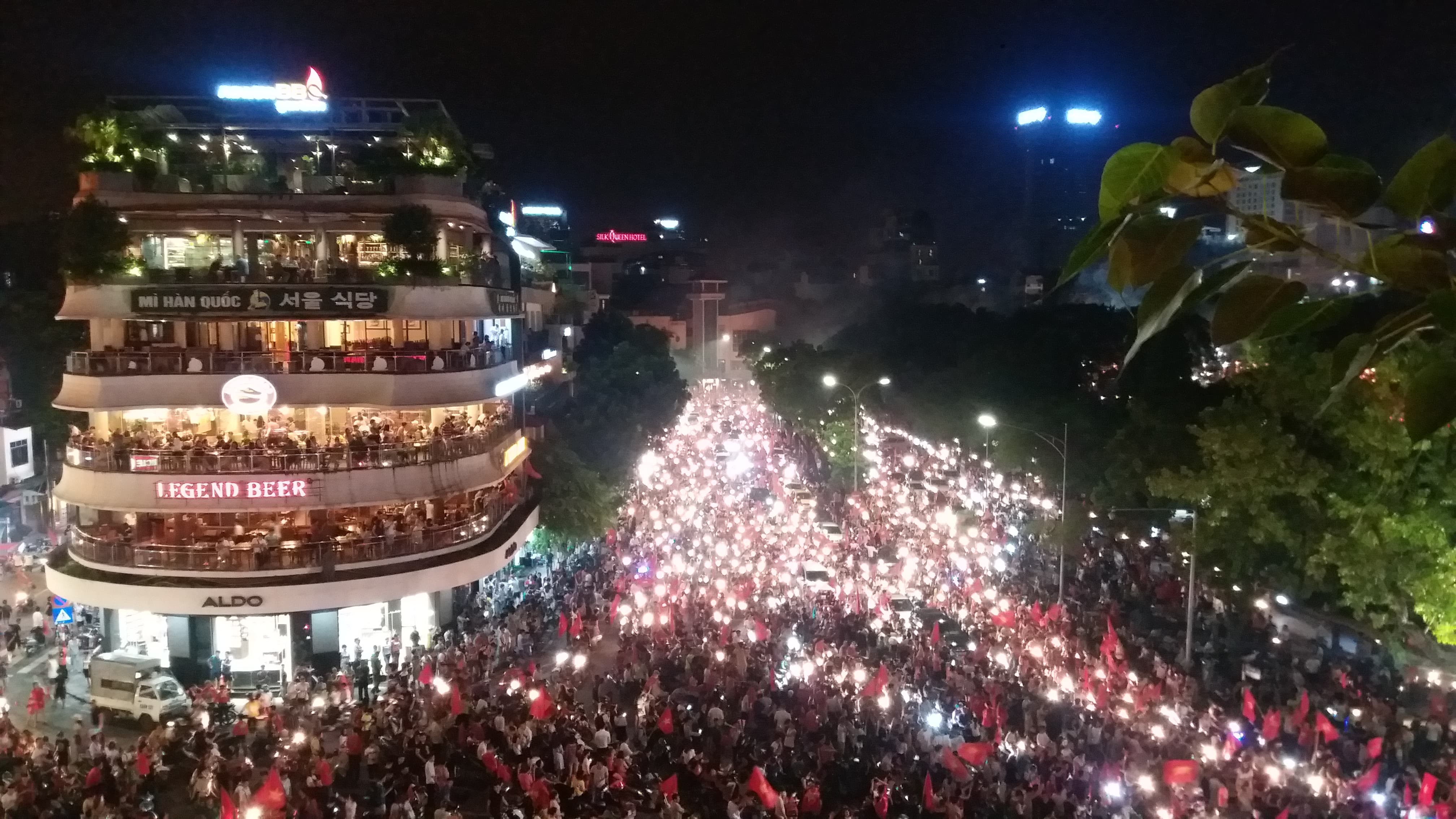 Khắp con đường Đồng Khởi, Hai Bà Trưng, Nhà thờ Đức Bà,… qua nửa đêm vẫn đông nghịt người. Ai nấy đều hô vang tự hào: “Việt Nam vô địch”…