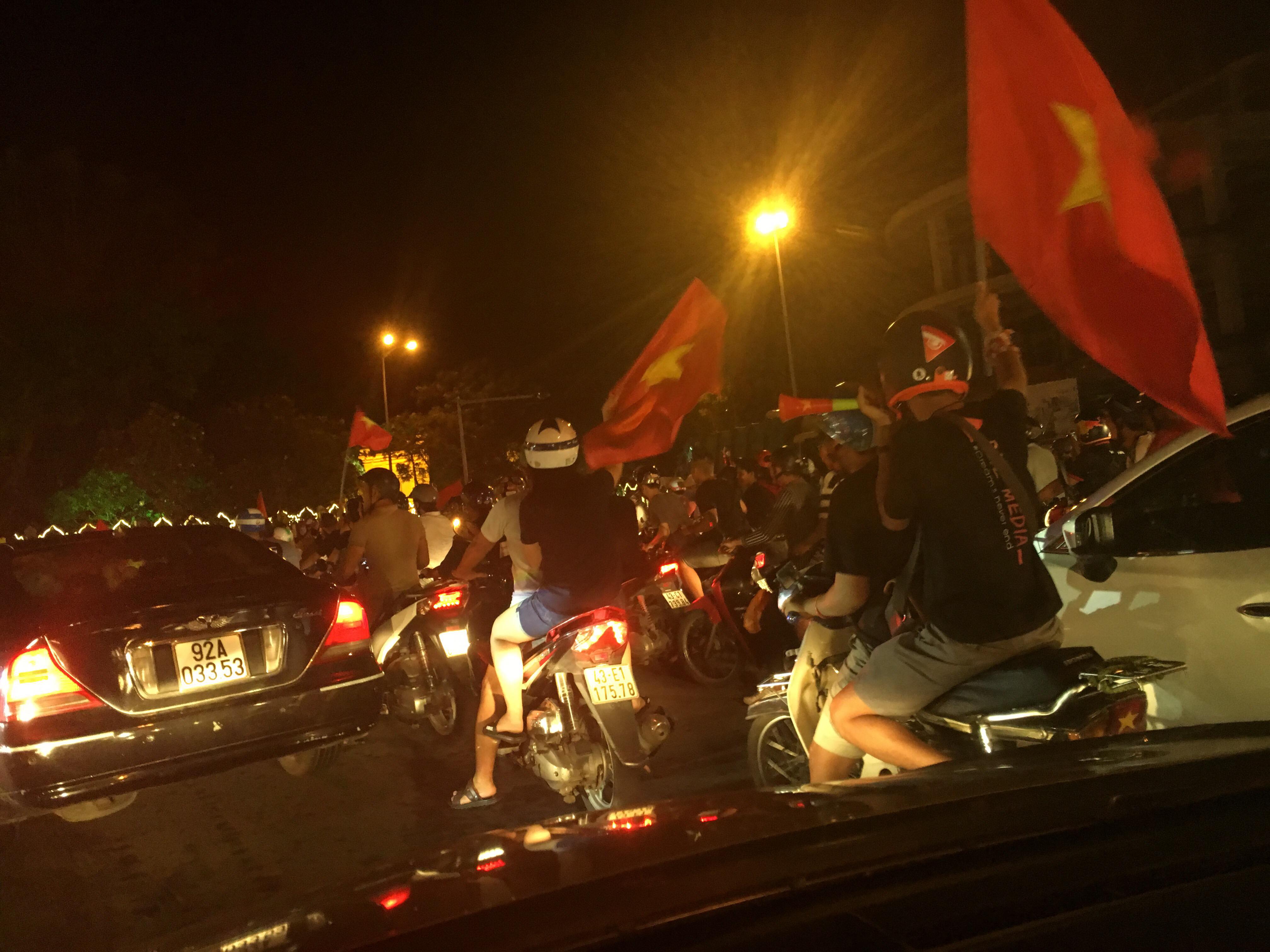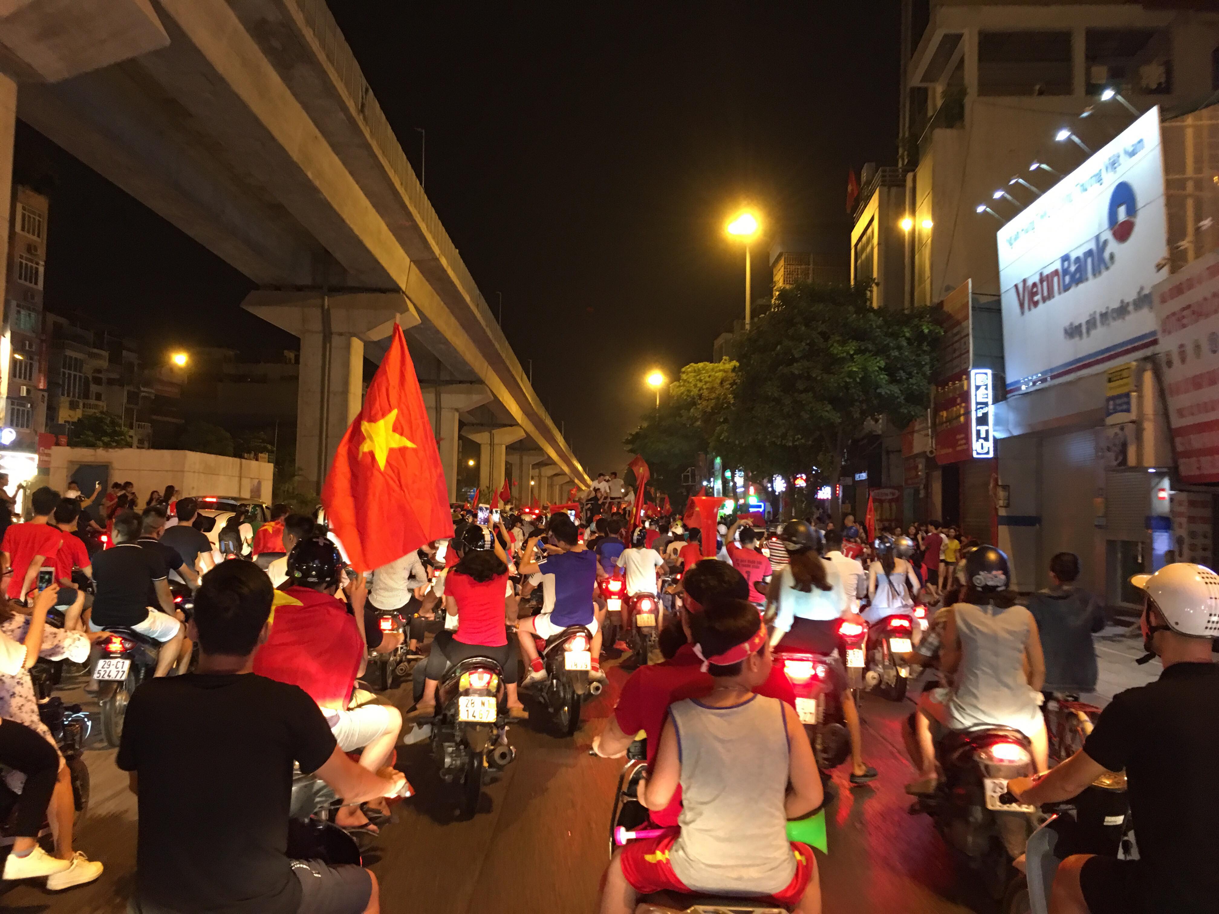 Sau tiếng còi kết thúc trận đấu vang lên, các cổ động viên 3 miền reo hò ầm ĩ. Ngay sau đó tất cả các cung đường trung tâm của Hà Nội, TP.HCM, Đà Nẵng… đã tràn ngập tiếng reo hò của hàng nghìn cổ động viên. Những người hâm mộ xem tại nhà cũng vội vã “đi bão” ăn mừng chiến thắng.