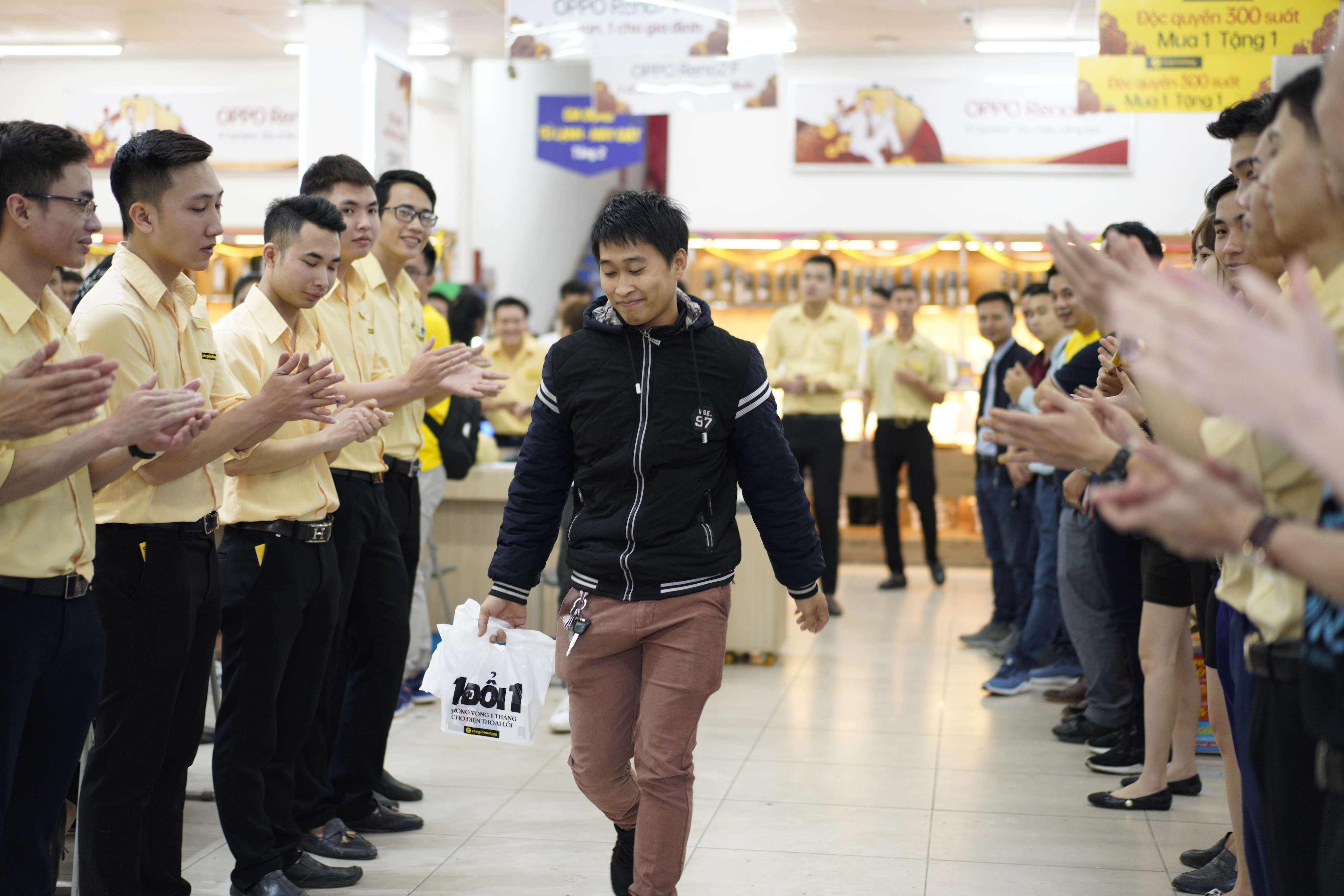Qua sự kiện ý nghĩa này, cơ hội để những người trẻ mang đến món quà bất ngờ dành cho người thân, gia đình trở nên gần hơn bao giờ hết. Như anh Bình (Hà Nội) đã đến Điện Máy Xanh xếp hàng từ 4 giờ chiều ngày hôm trước và may mắn là khách hàng cuối cùng được nhận thêm một máy OPPO Reno2 F trong sự kiện.