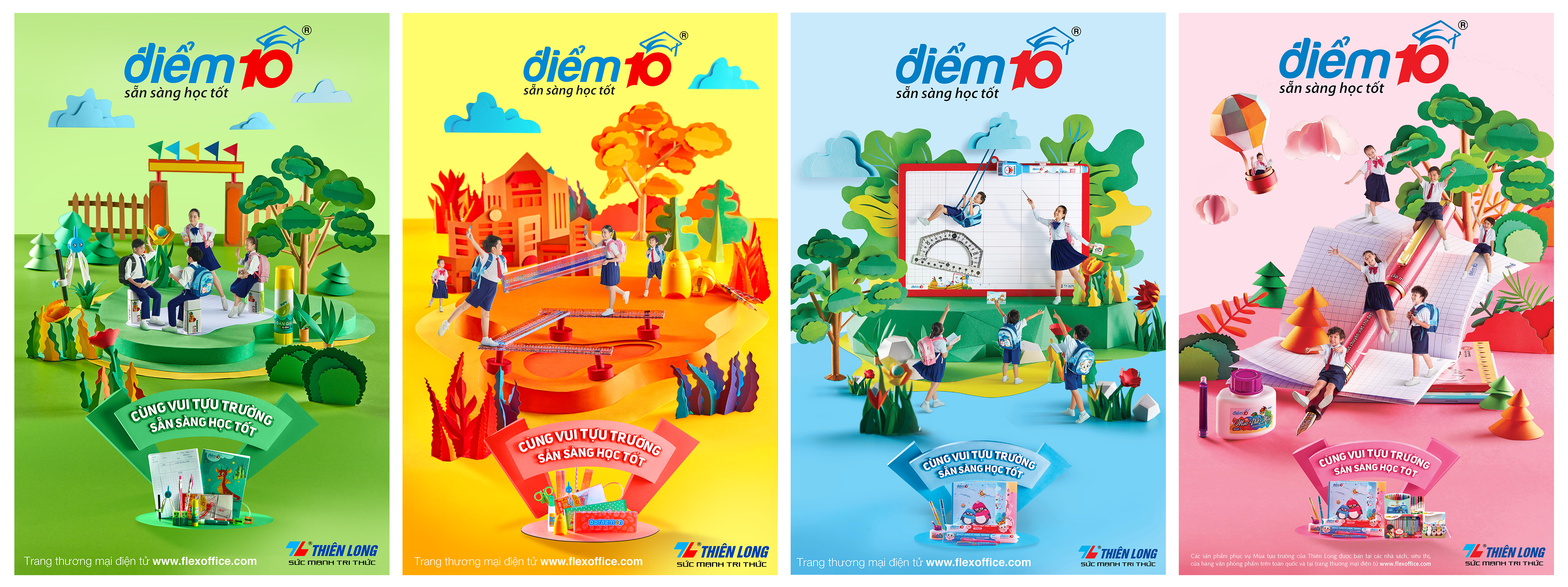 Vài tuần trước ngày tựu trường, nhãn hàng Dụng cụ học tập Điểm 10 của Thiên Long đã tung ra một bộ ảnh mà theo cộng đồng các ông bố bà mẹ nổi tiếng thì bộ ảnh đang nhận được sự chú ý và được các con quan tâm rất nhiều. Bộ ảnh có tên Trường Học Vui Vẻ, mang thông điệp “Cùng vui tựu trường - Sẵn sàng học tốt” của nhãn hàng Điểm 10.