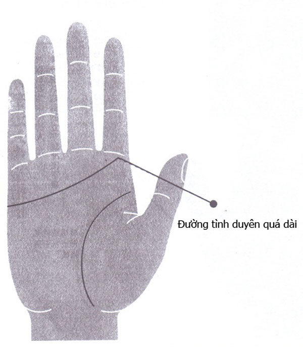 Xem chỉ tay đường tình duyên cho thấy nếu đường tình duyên quá dài, bạn cũng không mấy suôn sẻ trong tình cảm.