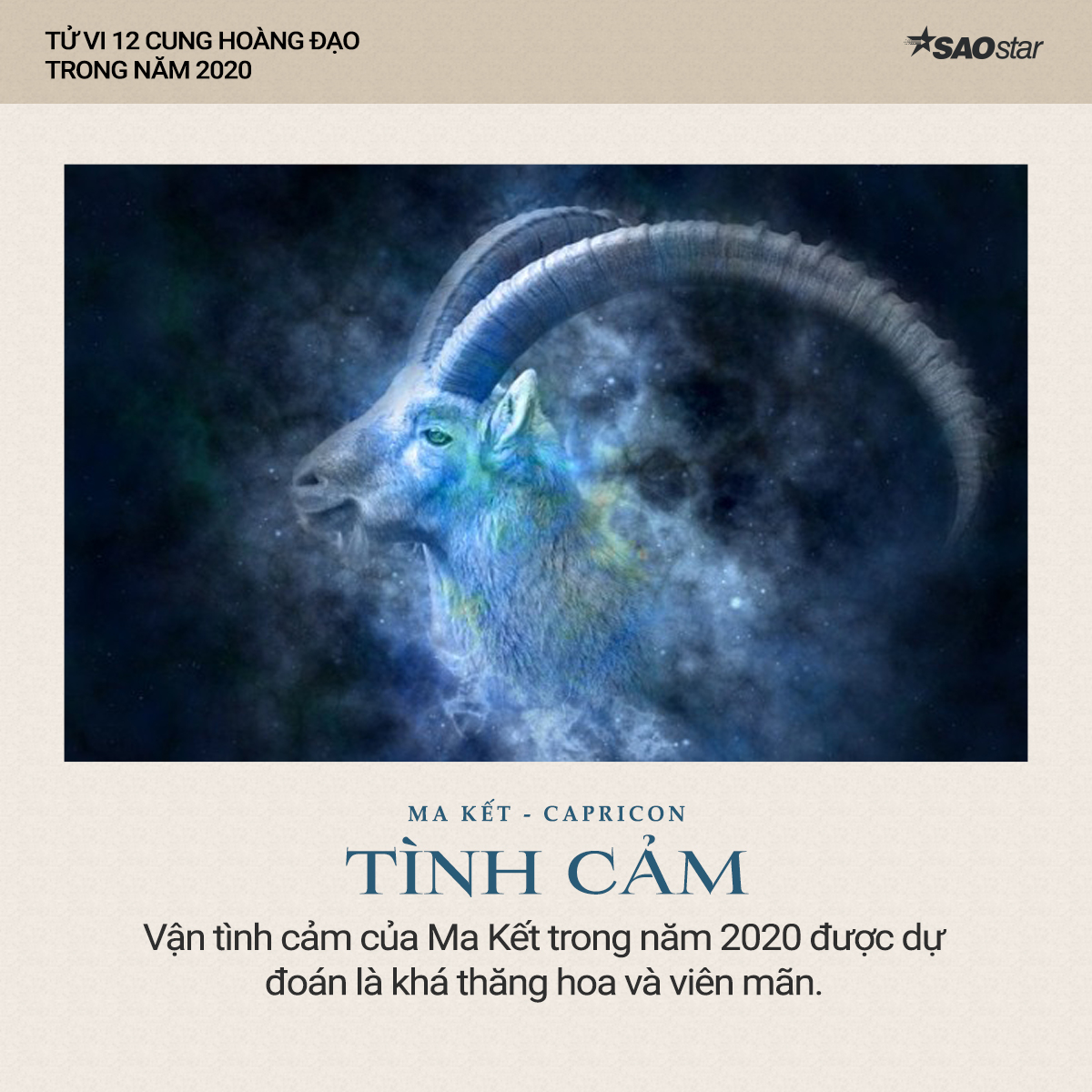 Vận trình tình cảm của Ma Kết trong năm 2020 được dự đoán là khá thăng hoa và viên mãn. Đây sẽ là một năm tràn ngập niềm vui trong đời sống tình cảm với Ma Kết nhưng để có thể tận hưởng trọn vẹn niềm vui đó thì bạn cần phải dứt khoát gạt sang một bên những lo lắng, căng thẳng trong cuộc sống thường ngày. Vào thời điểm sao Thủy và sao Thổ liên kết với nhau trong năm, mối quan hệ tình cảm của chòm sao này sẽ bước sang một giai đoạn mới. Bạn hãy yên tâm vì thay đổi này sẽ mang lại những tín hiệu tích cực cho bạn vậy nên thay vì lo lắng hay né tránh thì bạn hãy thích nghi và tận hưởng nó.