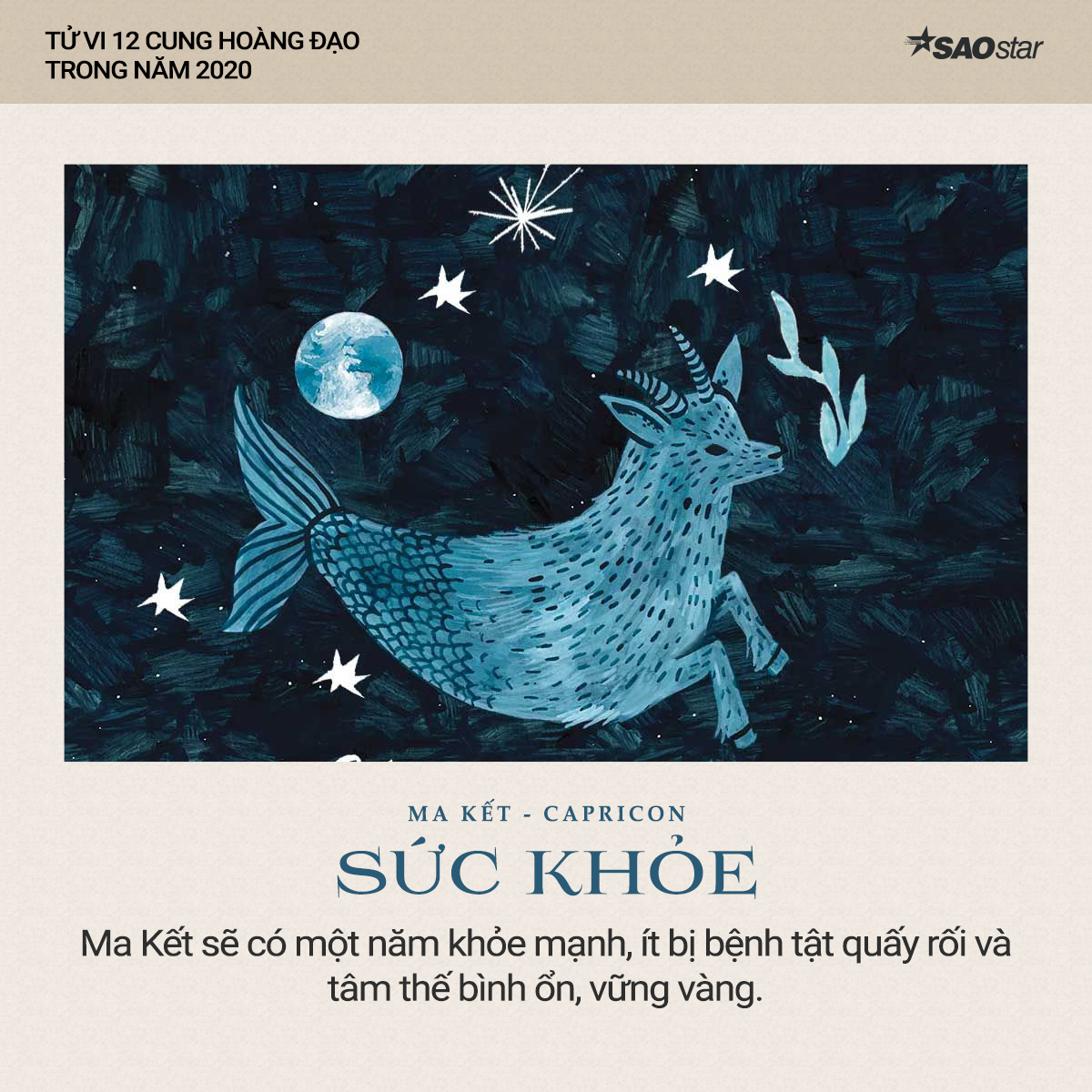 Xem tử vi cung Ma Kết năm 2020 cho thấy, cung hoàng đạo này sẽ có một năm khỏe mạnh, ít bị bệnh tật quấy rối và tâm thế bình ổn, vững vàng. Sức khỏe dồi dào giúp cho bạn lúc này cũng luôn vui vẻ và đầy ắp năng lượng tích cực.