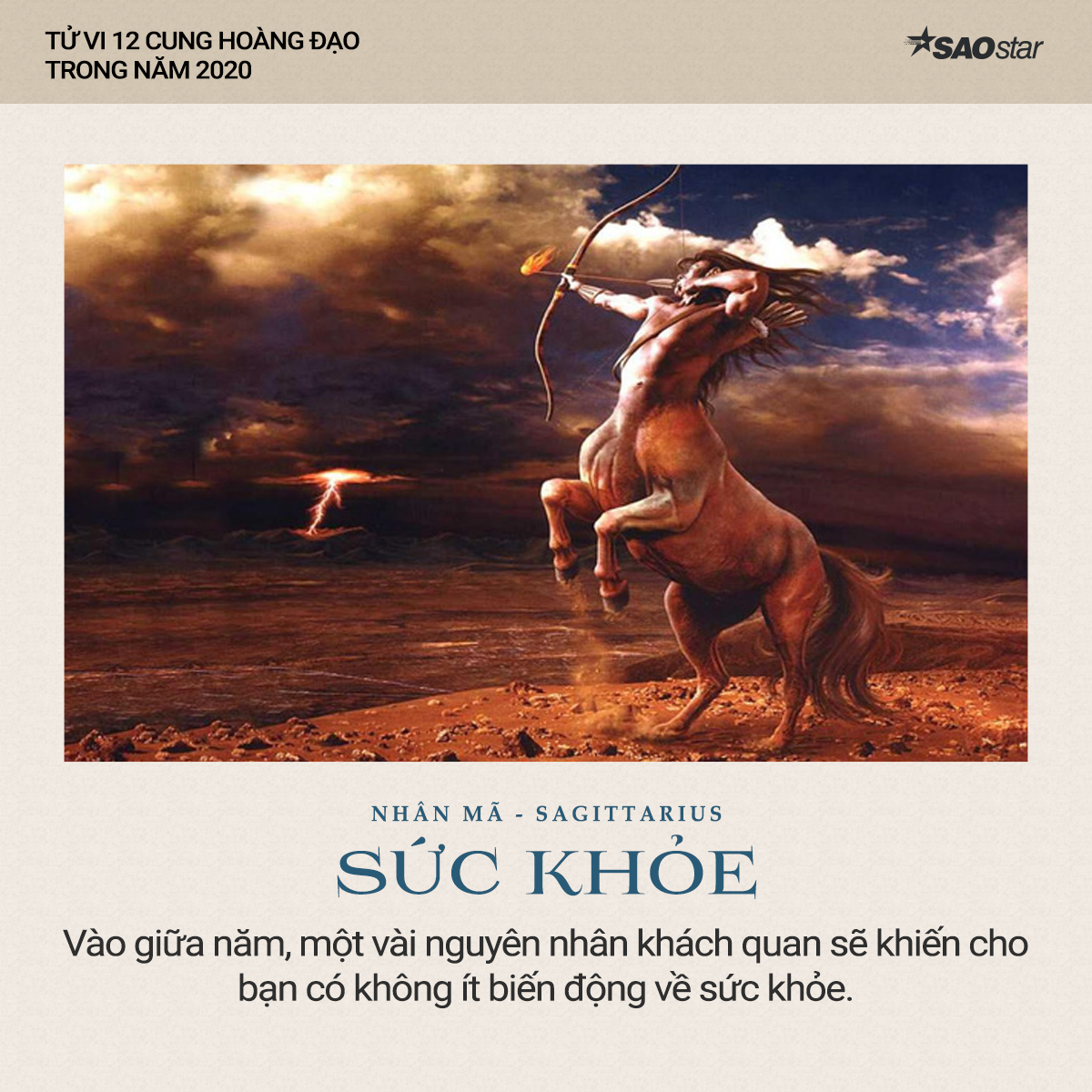 Xem tử vi cung Nhân Mã năm 2020 cho thấy, cung hoàng đạo này sẽ có một năm ổn định về sức khỏe. Bạn luôn biết cách đầu tư đúng mức vào cơ thể mình như cải thiện chế độ dinh dưỡng, tinh thần nên nhờ đó sự nghiệp thăng hoa, tâm trí cũng luôn bình ổn.