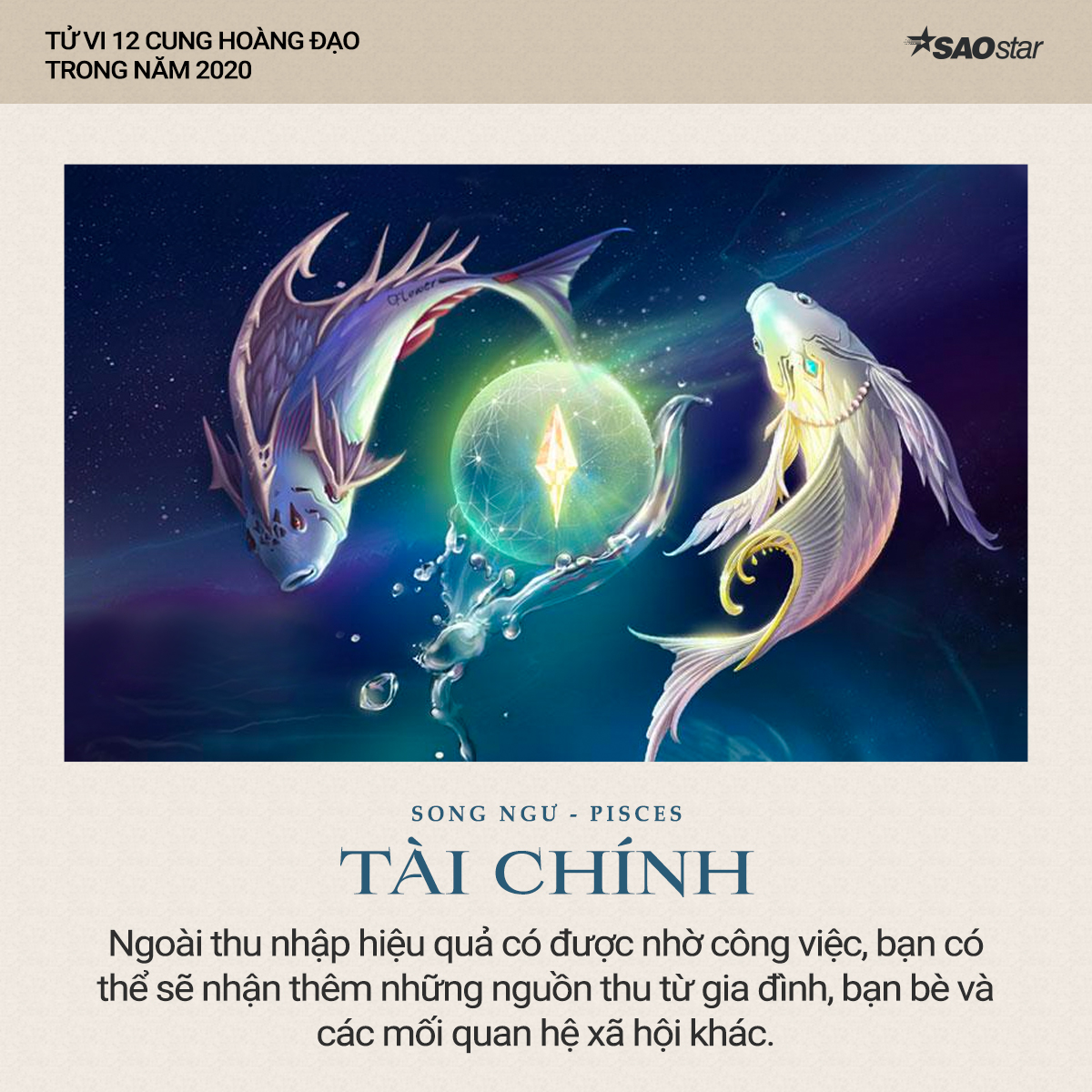 Ngoài thu nhập hiệu quả có được nhờ công việc, bạn có thể sẽ nhận thêm những nguồn thu từ gia đình, bạn bè và các mối quan hệ xã hội khác. Xét về rủi ro trong kinh doanh, khoản đầu tư của Song Ngư trong vòng nửa đầu năm sẽ khá lý tưởng, bạn sẽ nhận được rất nhiều tin tốt và thu lời cao. Nhưng trong giai đoạn nửa cuối của năm, khả năng kiếm tiền của chòm sao này sẽ hạn hẹp hơn. Ngoài ra, bạn sẽ có rất nhiều thứ cần phải chi trả và phát sinh. Nhìn chung, bạn hãy lên kế hoạch chi tiêu và tiết kiệm vì bạn sẽ có rất nhiều vấn đề phải tiêu tiền trong năm nay.