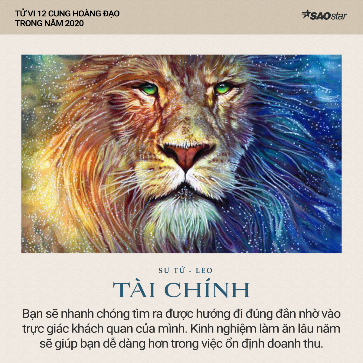 Xem tử vi cung Sư Tử năm 2020 cho thấy, cung hoàng đạo này sẽ có một năm khá tích cực về tài chính. Bạn sẽ nhanh chóng tìm ra được hướng đi đúng đắn nhờ vào trực giác khách quan của mình. Kinh nghiệm làm ăn lâu năm sẽ giúp bạn dễ dàng hơn trong việc ổn định doanh thu.