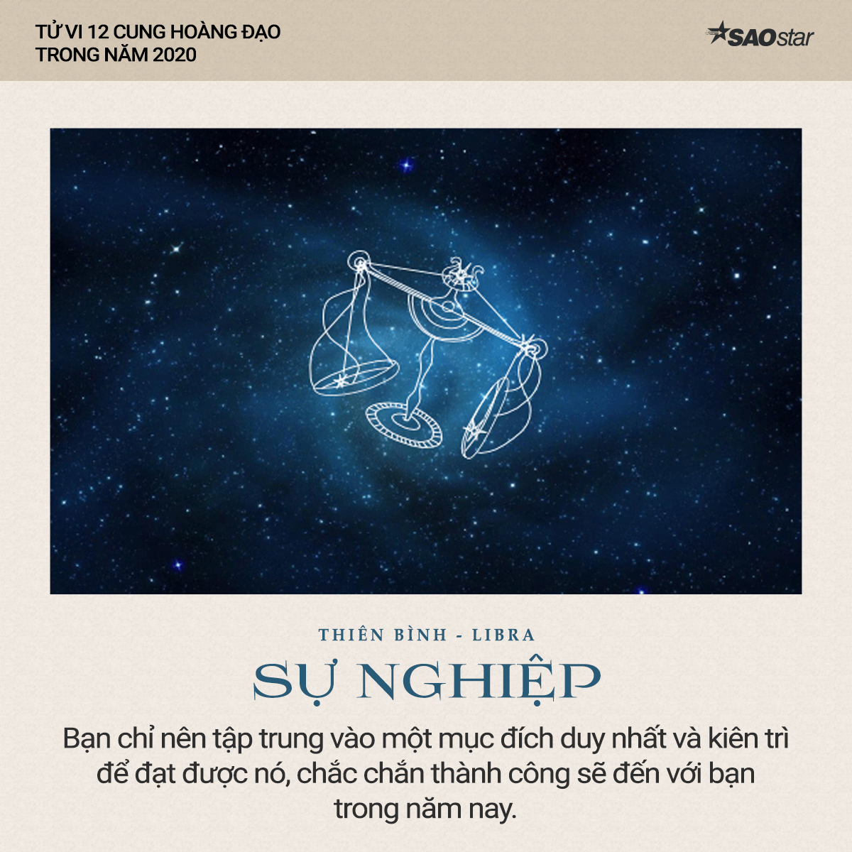 Xem tử vi cung Thiên Bình năm 2020 cho thấy cung hoàng đạo này sẽ gặt hái được nhiều thành công trong sự nghiệp. Dù ở bất cứ vị trí và đảm nhiệm công việc nào đi chăng nữa, bạn đều thể hiện thái độ tích cực làm việc, sáng tạo hết mình và điều đó sẽ giúp cho công việc của bạn rất suôn sẻ.