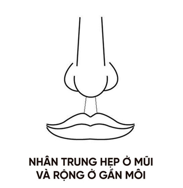 Nhân trung sâu, gần mũi hẹp và rộng dần về phía môi
