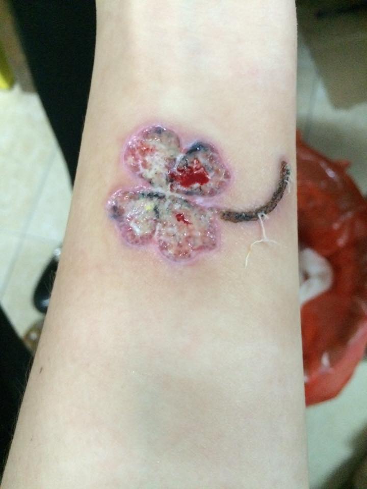 Mình tuyệt vọng và muốn bỏ đi thật xa. Sau đó quyết định xóa xăm để đi Nhật Bản, tránh xa nơi đây dù mọi người có ngăn cản. Trong thời gian xóa nó còn bị nhiễm trùng, đau đớn lắm, nhớ đời luôn. Và cuối cùng số mình cũng chẳng đi được. Thấy tiếc hình xăm và muốn xăm đè lên vết sẹo này các bạn ạ. Cho mình xin địa chỉ với hình phù hợp với ạ. Mỗi lần nhìn vào nó mình lại thấy tiếc đứt gan đứt ruột hình xăm”.