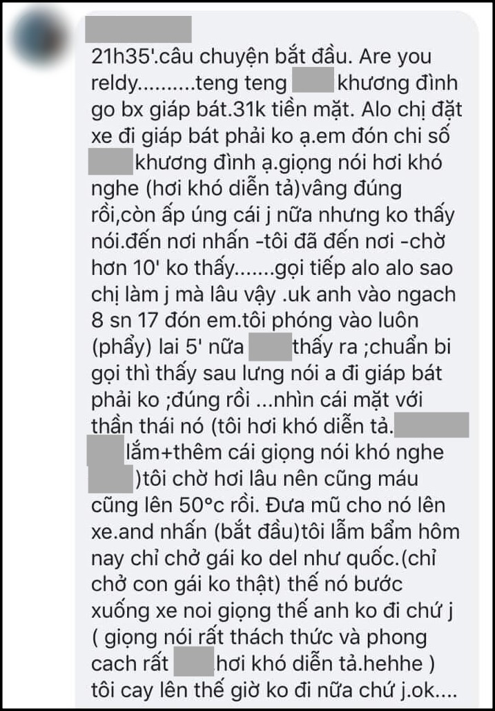 Tài xế GrabBike bình luận trên Facebook: “Cái mặt với thần thái nó khó diễn tả lắm, cái giọng khó nghe”